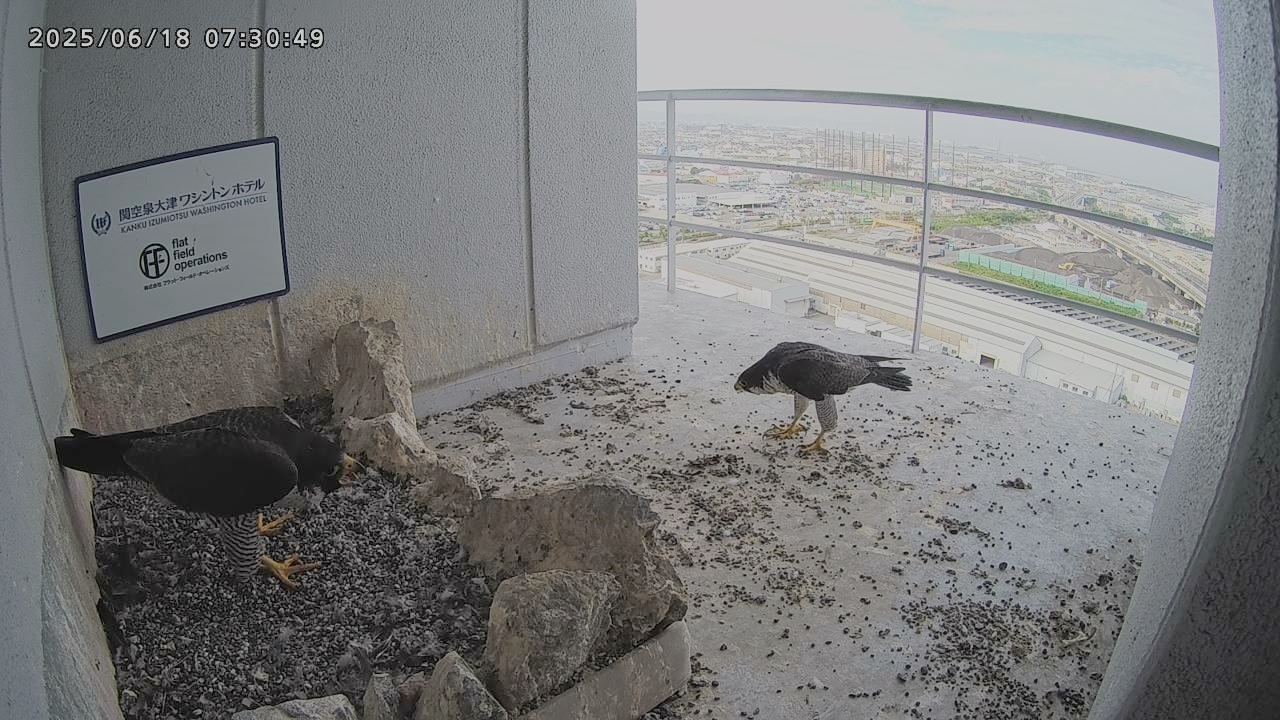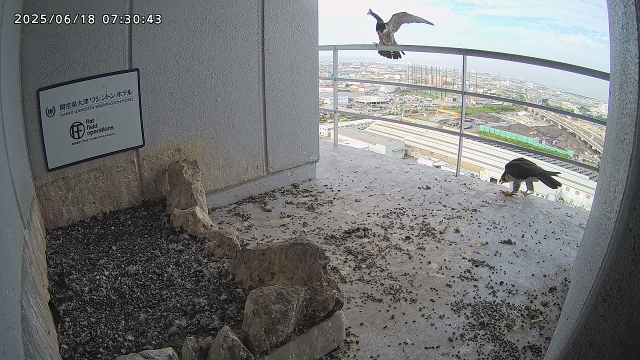 7:30 さらちゃんがベランダから巣の中へ、きららⅣくんは手すりからベランダに降りましたが巣には入りませんでした。
