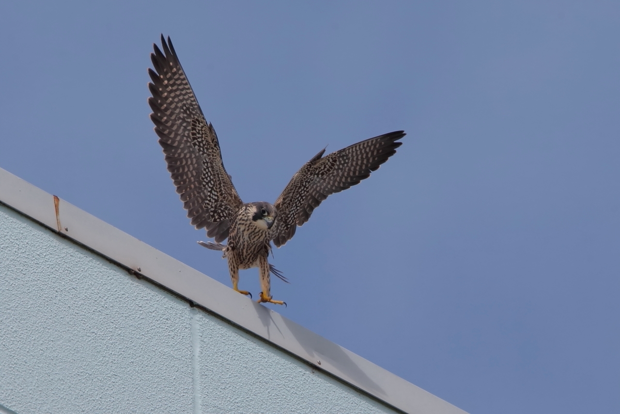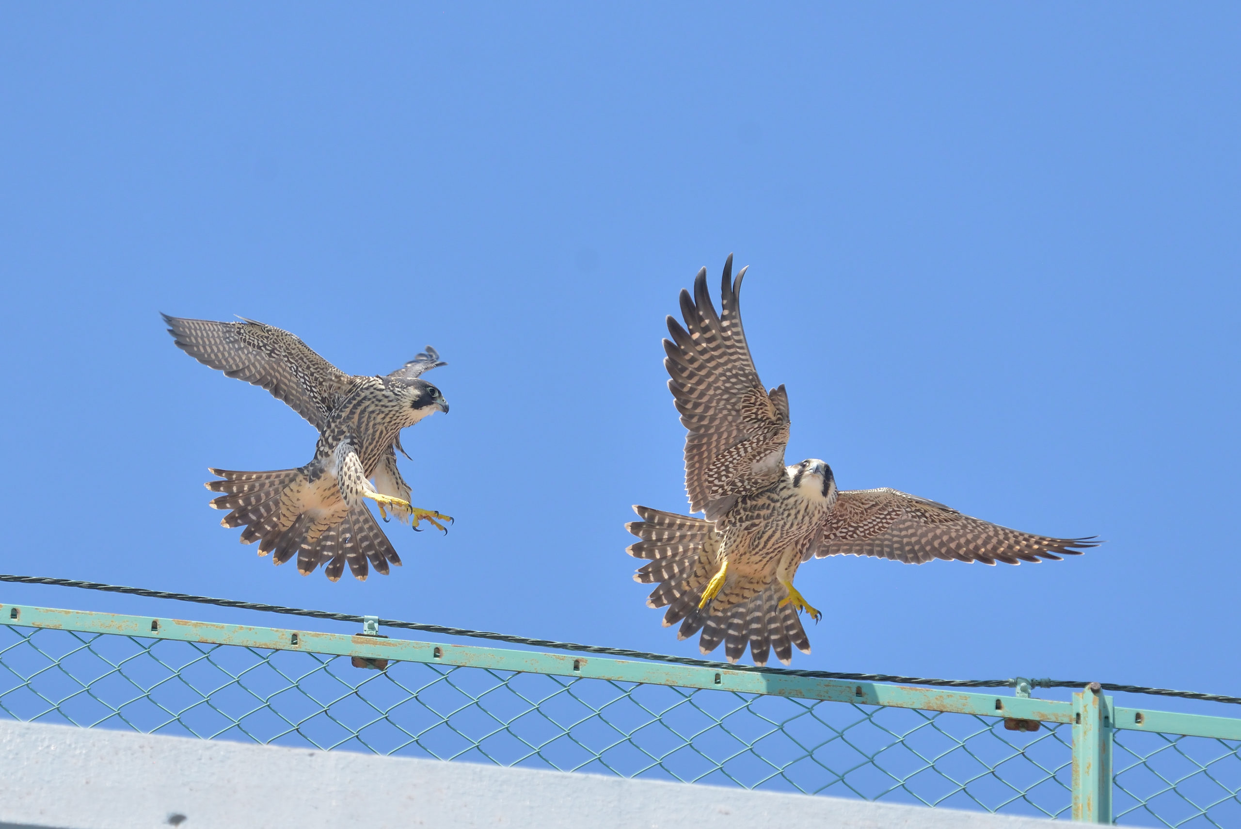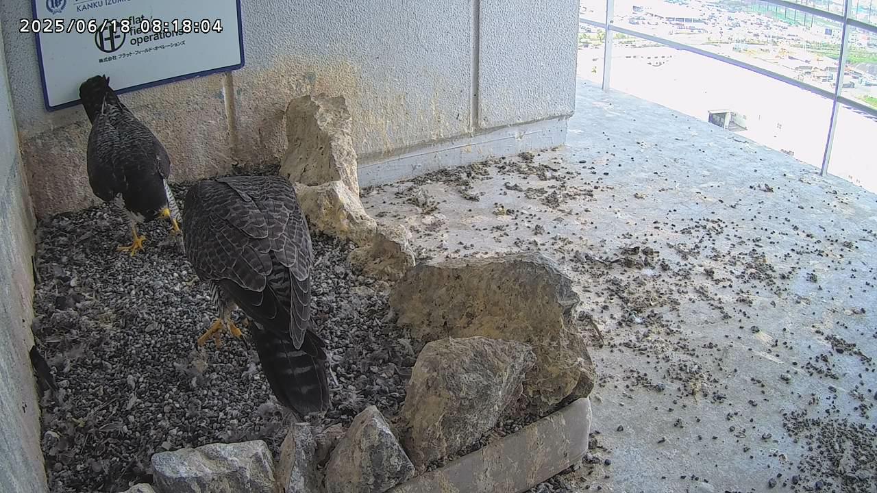8:11 さらちゃんがベランダにいるところにきららⅣくんが手すりを飛び越して巣に入りました。続いてさらちゃんも巣に入り、巣の中ツーショット。ヒナの巣立ち後2回目でした。その後、きららⅣくんは一旦手すりにとまり、さらちゃんがベランダにに出た隙にまた巣に入りました。さらちゃんも続いて巣に入りまたツーショット。