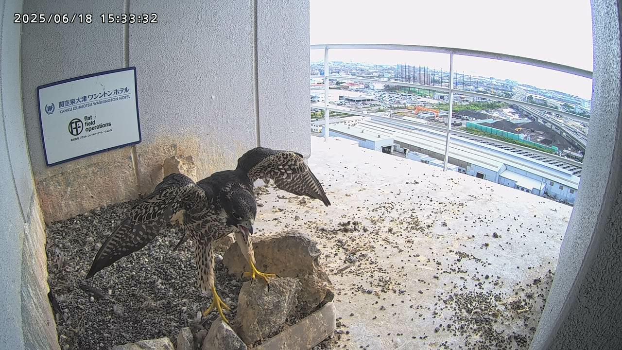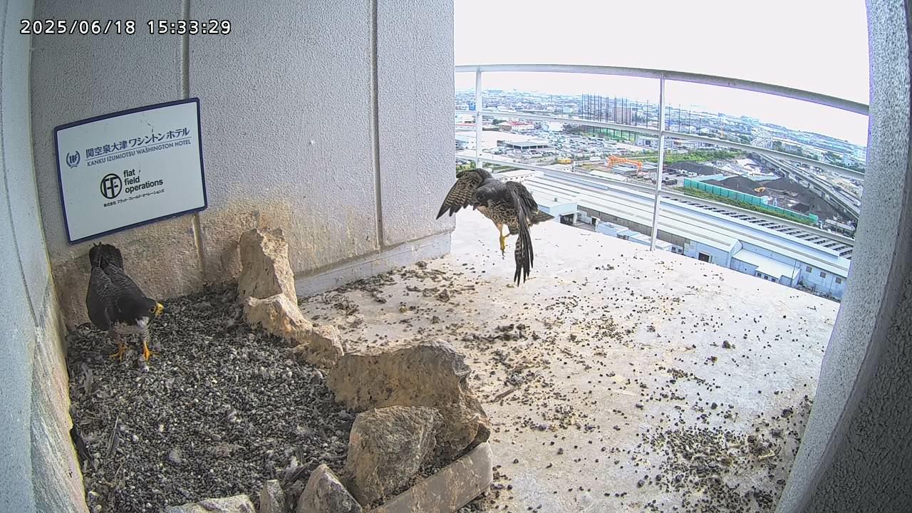 15:30 さらちゃんがベランダにいる時にきららⅣくんが巣に飛び込みましたがさらちゃんは巣に入りませんでした。15:33 にソリちゃんがベランダから巣に入り、同時にきららⅣくんは飛び出しました。(動画もあります)