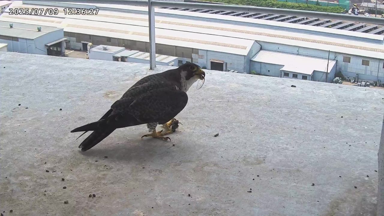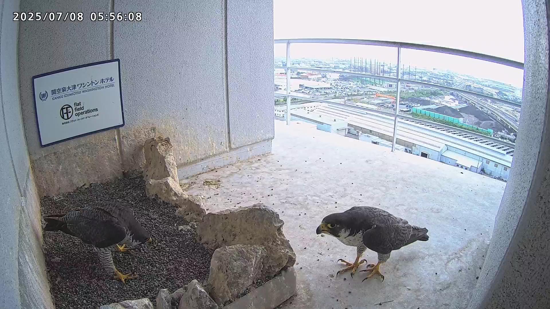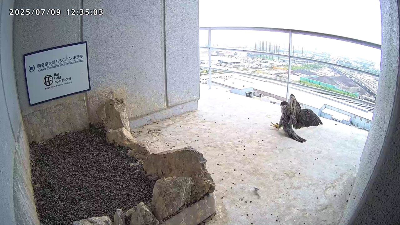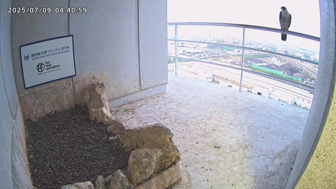 2025年7月9日(水)観察メモ 2025.07.092025.07.11 前:PREV 後:NEXT YouTube動画 はここをクリックしてください 7月9日(水)【120】第1子・第2子(81日齢) 本日の観察概要 04:40 さらちゃんが手すりに来て、04:43に飛びました。11:23 きららⅣくんが来て、ベランダに舞い込んだセミを捉えました。 見守りりカメラ映像による観察 04:40 さらちゃんが手すりに来ましたが、04:43に飛びました 手すりに取り付くさらちゃん さらちゃん 11:23 きららⅣくんが来て、ベランダに舞い込んだセミを捉えました。 手すりに取り付くきららⅣくん セミを捕まえたきららⅣくん 拡大するときららⅣくんの嘴にセミの羽根が見えます ちぎれたセミの羽根が床に落ちています 巣に入りました 奥岩に止まったきららⅣくん 手すりに留まったきららⅣくん きららⅣくんの飛び出し 前:PREV 後:NEXT
