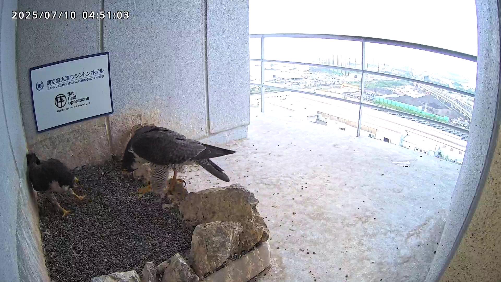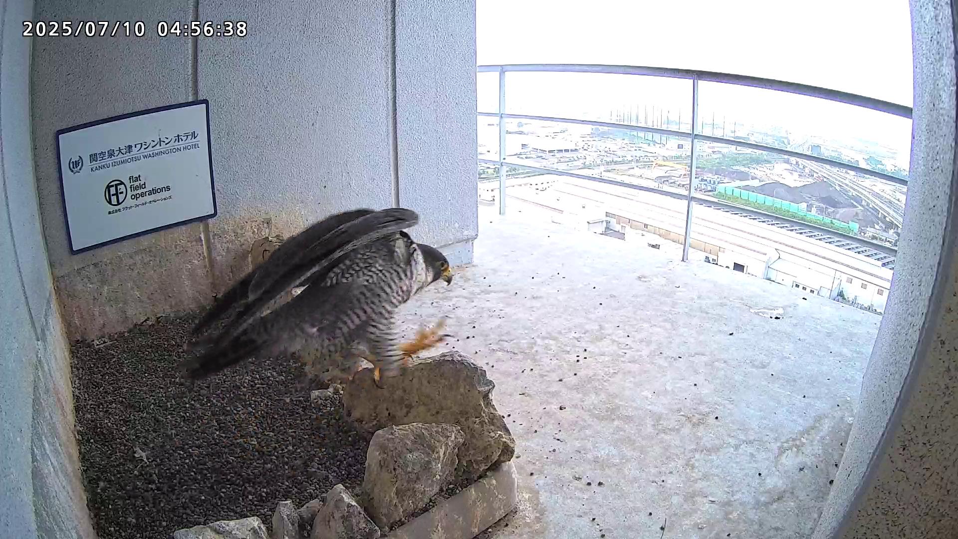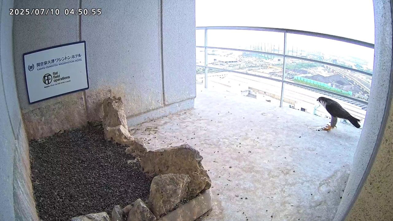 2025年7月10日(木)観察メモ 2025.07.102025.07.13 前:PREV 後:NEXT YouTube動画 はここをクリックしてください 7月10日(木)【121】第1子・第2子(82日齢) 本日の観察概要 04:50 さらちゃんがベランダにいるところにきららⅣくんが巣に飛び込み、さらちゃんも続いて巣に入り、巣の中ツーショット (動画もあります) 見守りりカメラ映像による観察 04:50 巣の中ツーショット さらちゃんが手すりに来ました きららⅣくんが巣に飛び込みました さらちゃんも巣の入ります 巣の中ツーショット きららⅣくんが先に巣から出ます 思わせぶりなきららⅣくん、飛び出しました。 さらちゃんもベランダに出ます さらちゃんは5:06までいました。 前:PREV 後:NEXT
