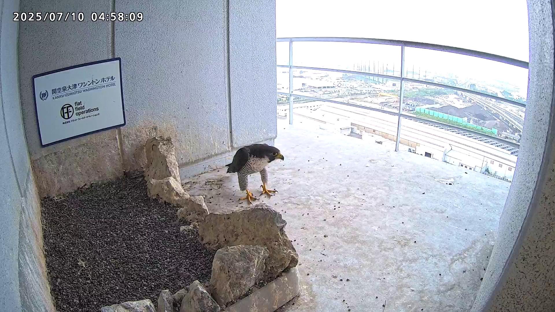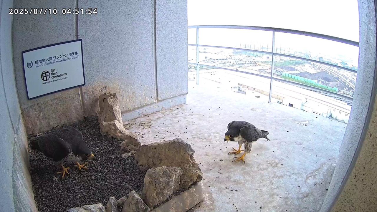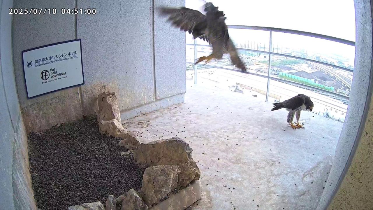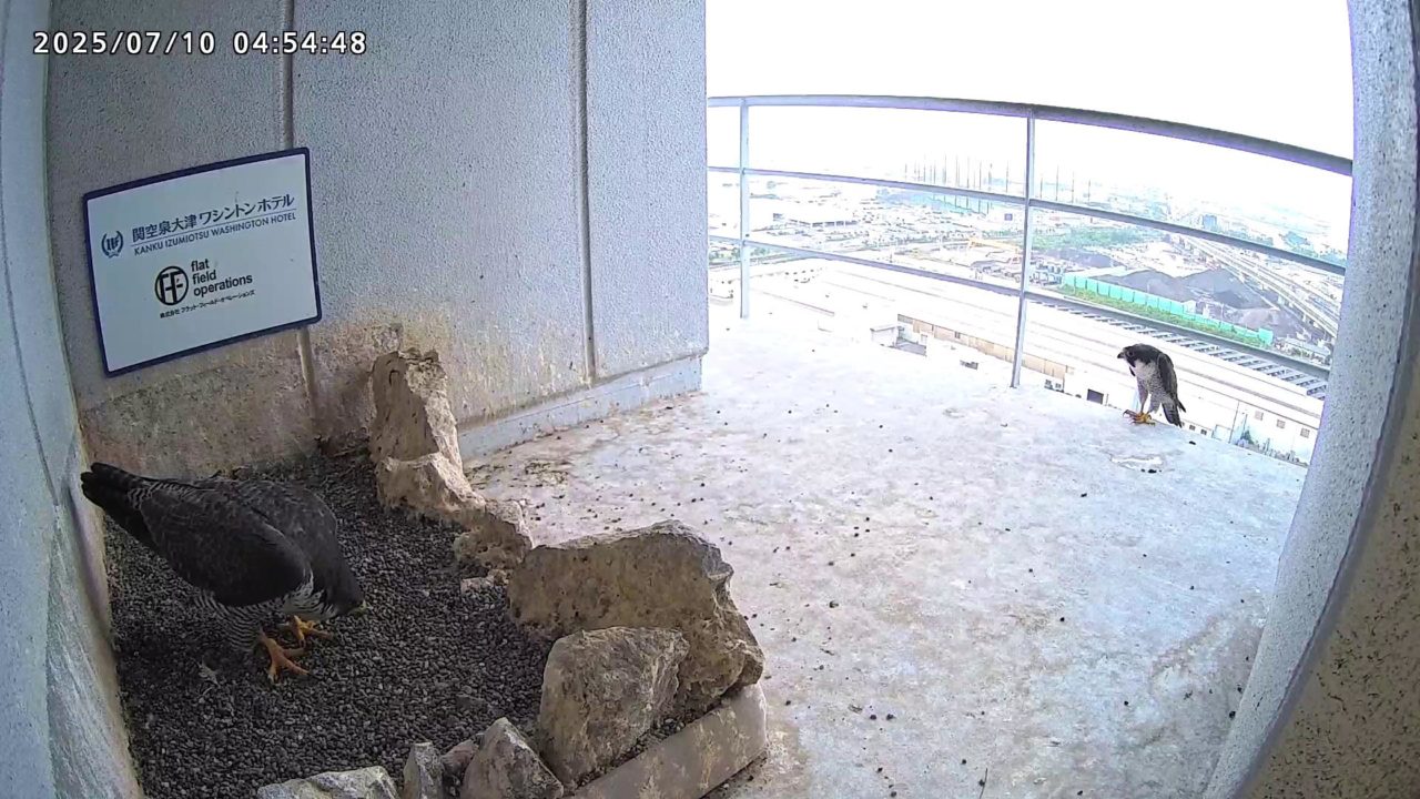 2025年7月10日(木)観察メモ 2025.07.102025.07.13 前:PREV 後:NEXT YouTube動画 はここをクリックしてください 7月10日(木)【121】第1子・第2子(82日齢) 本日の観察概要 04:50 さらちゃんがベランダにいるところにきららⅣくんが巣に飛び込み、さらちゃんも続いて巣に入り、巣の中ツーショット (動画もあります) 見守りりカメラ映像による観察 04:50 巣の中ツーショット さらちゃんが手すりに来ました きららⅣくんが巣に飛び込みました さらちゃんも巣の入ります 巣の中ツーショット きららⅣくんが先に巣から出ます 思わせぶりなきららⅣくん、飛び出しました。 さらちゃんもベランダに出ます さらちゃんは5:06までいました。 前:PREV 後:NEXT