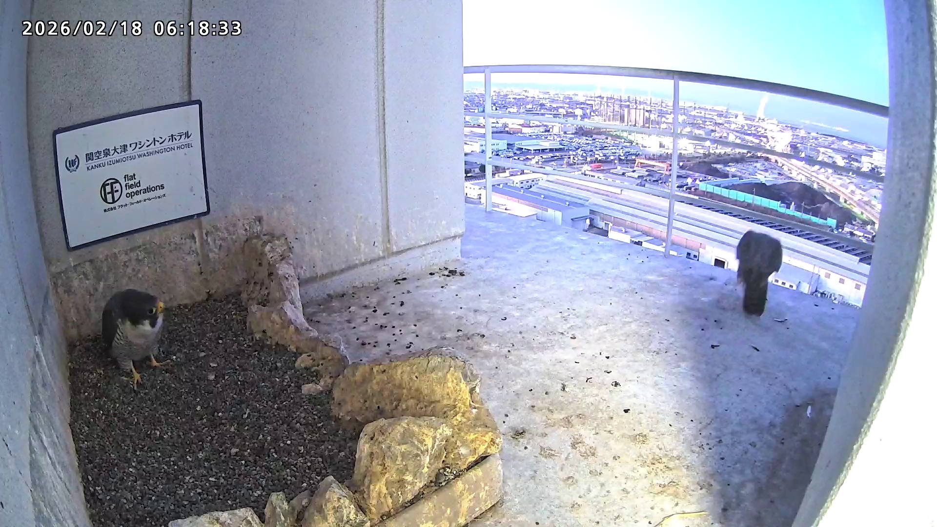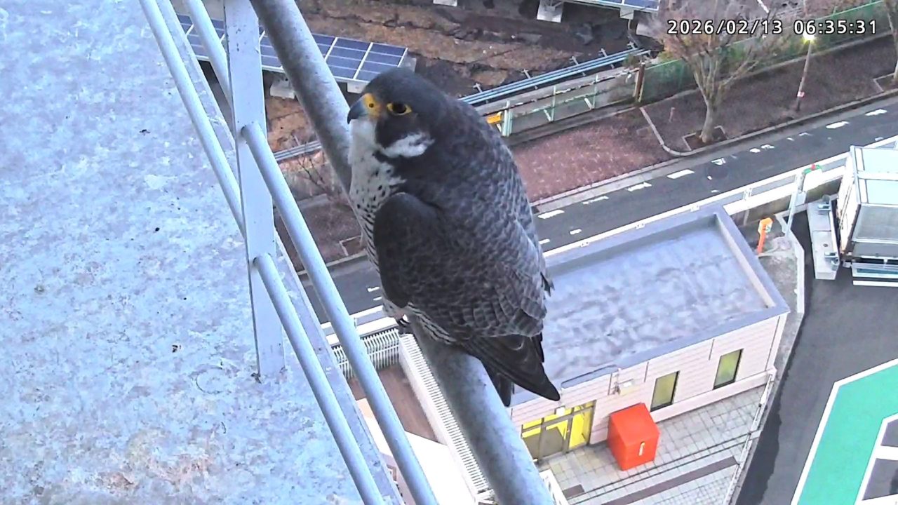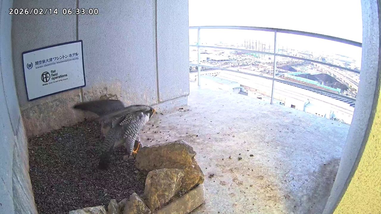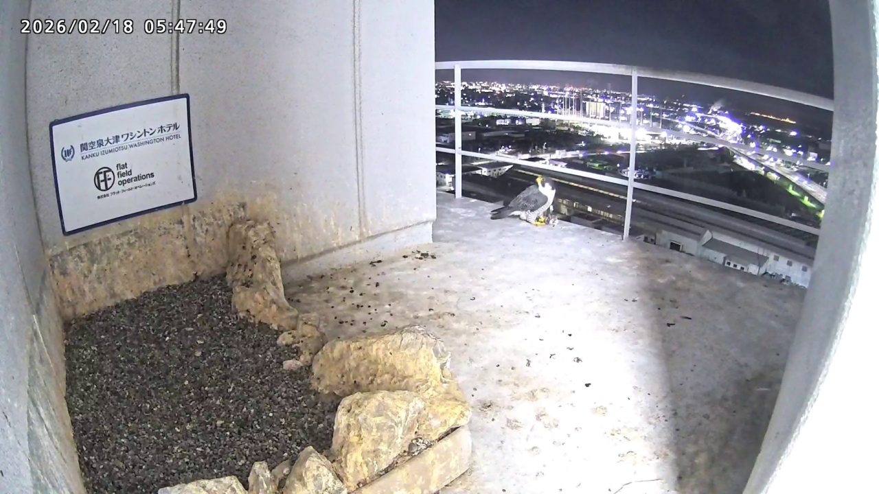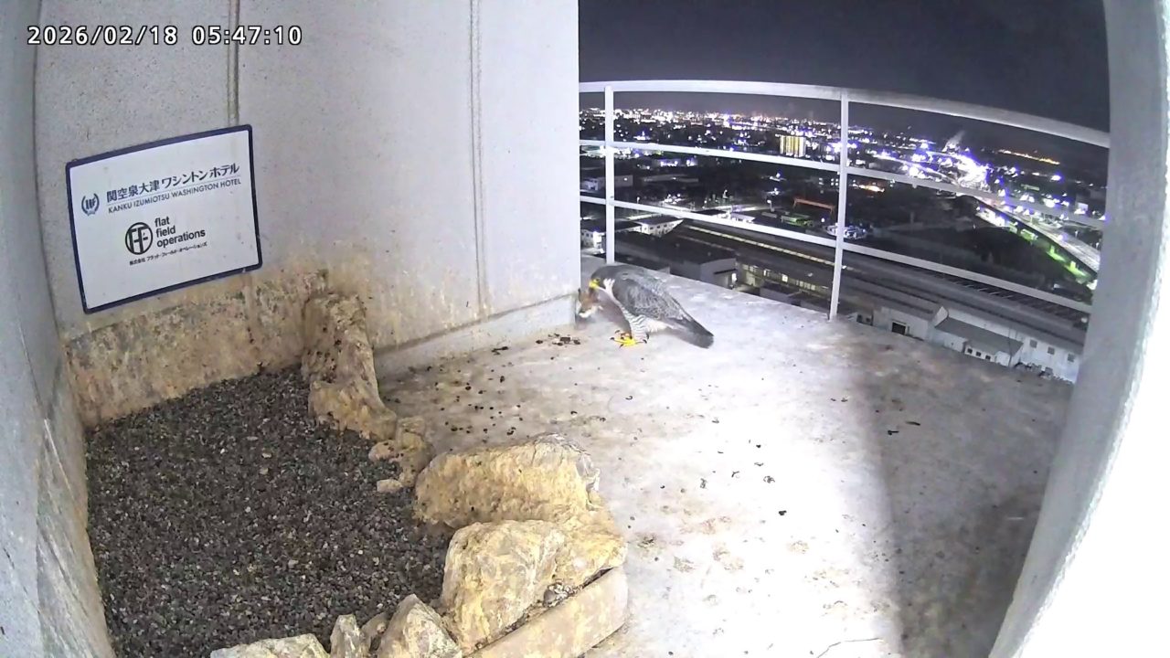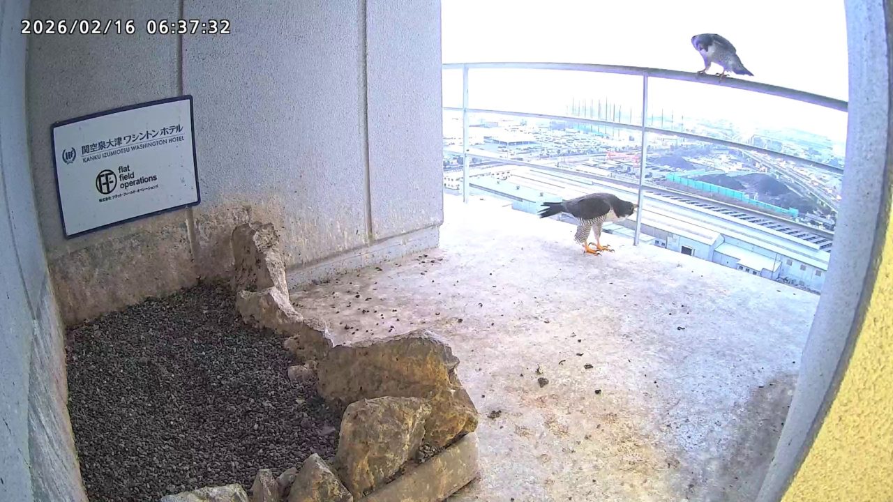 06:37 2羽で巣階に来ましたが、巣に入ったのはきららⅣくんのみ、さらちゃんはすぐに飛びました。06:43にきららⅣくんも飛びました。