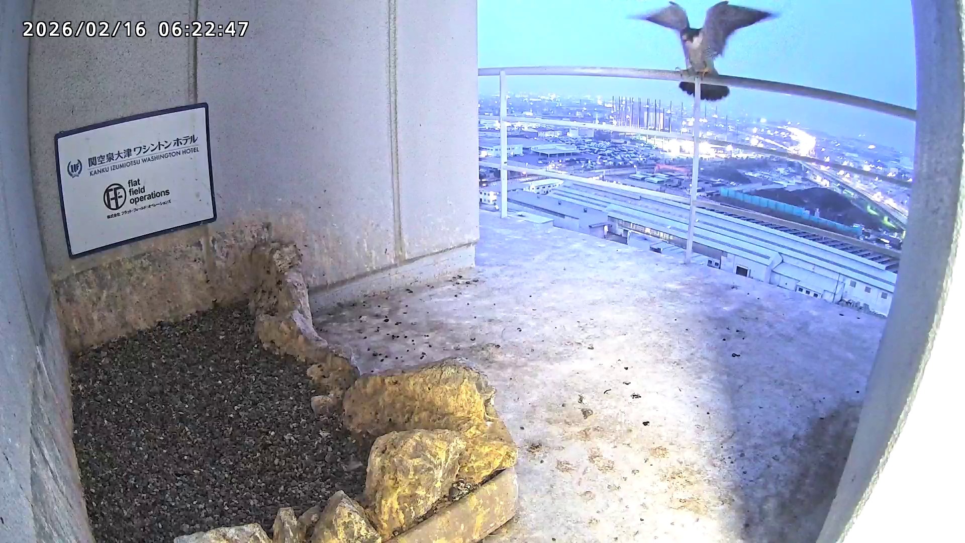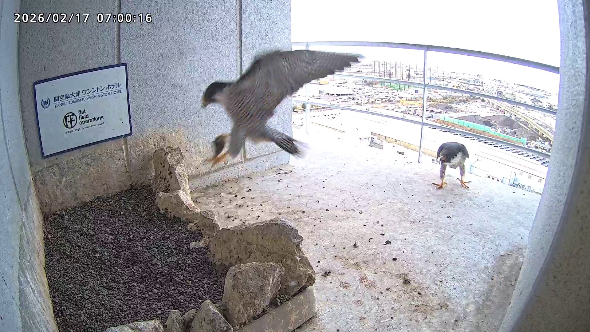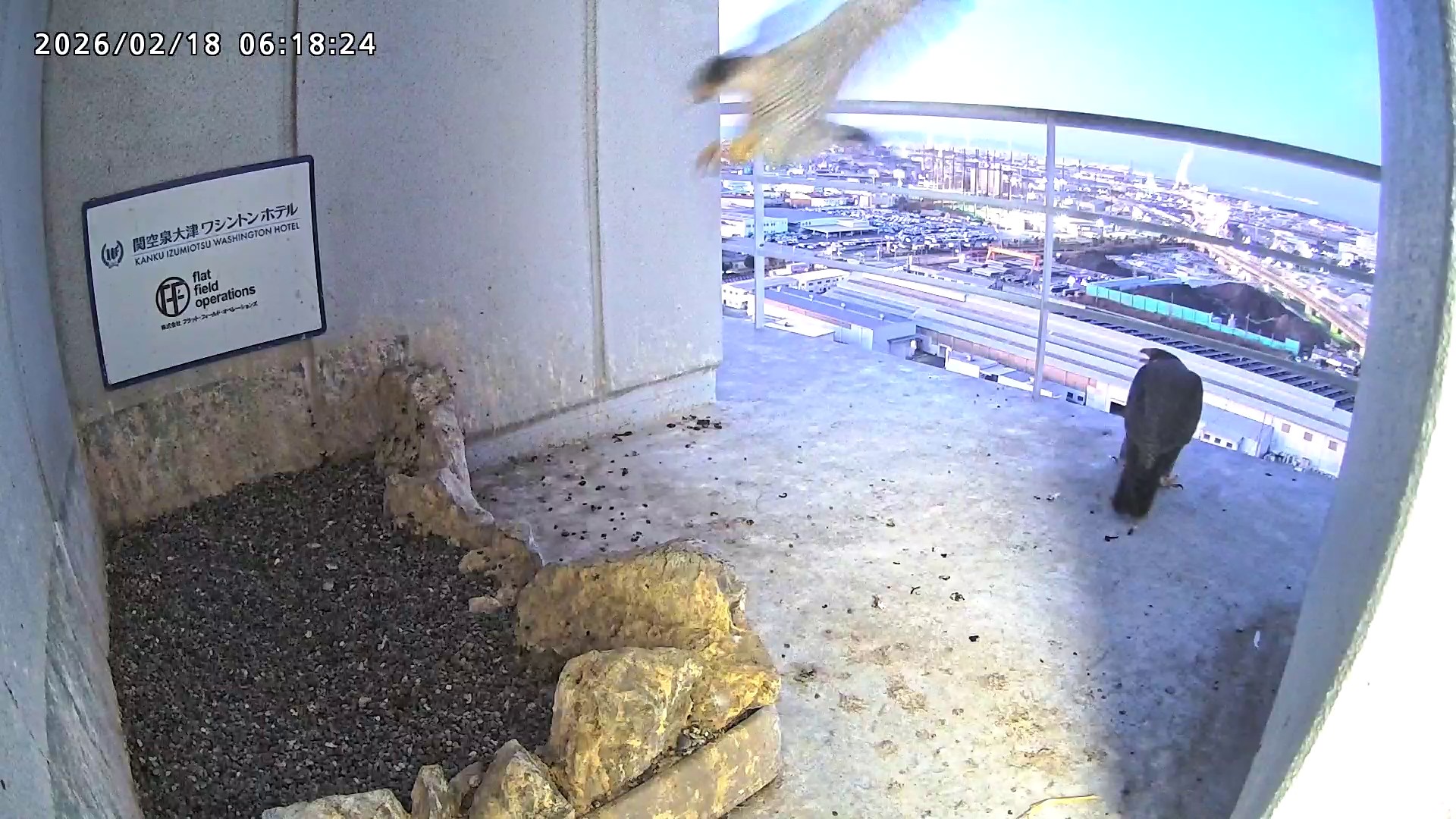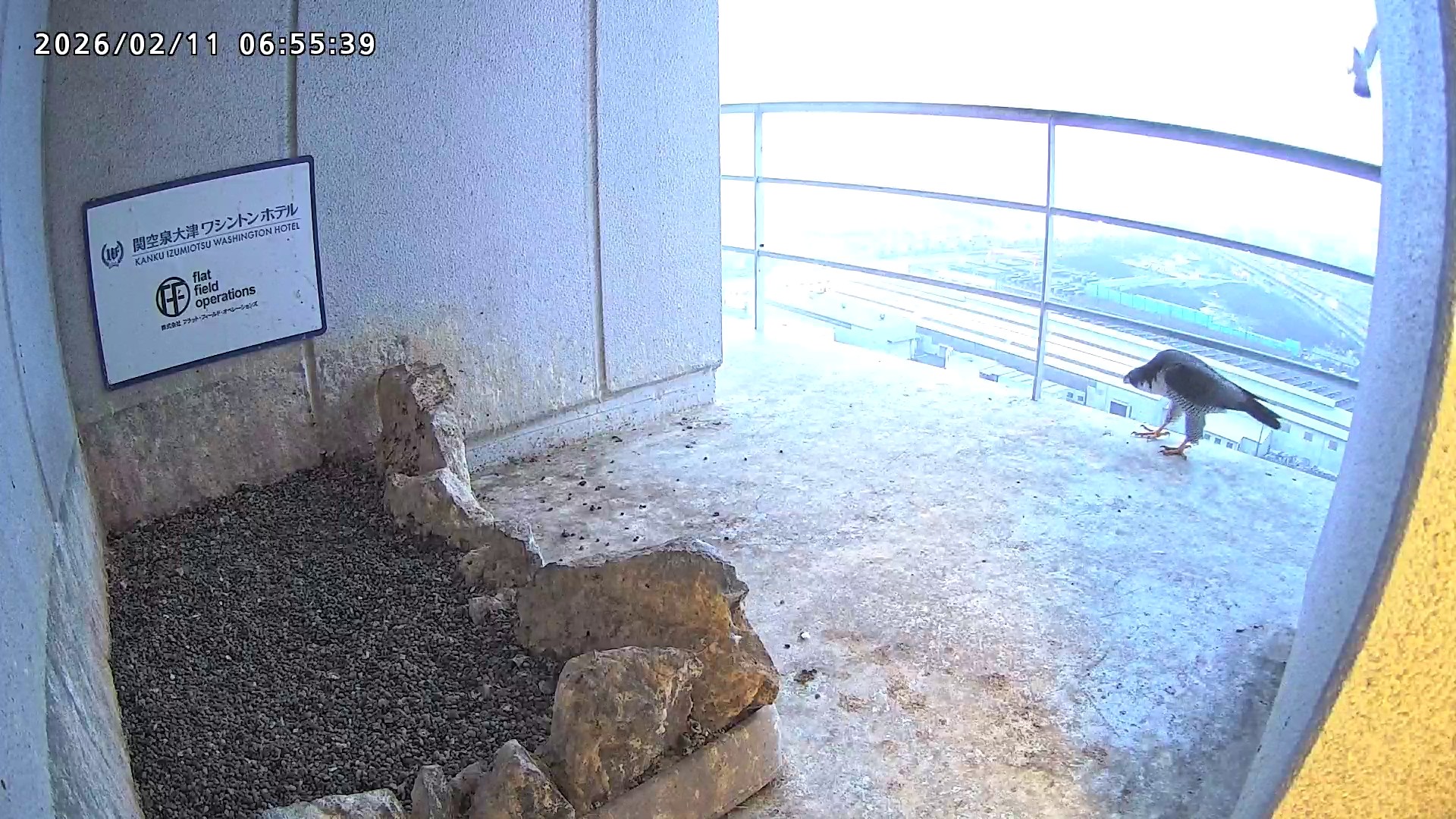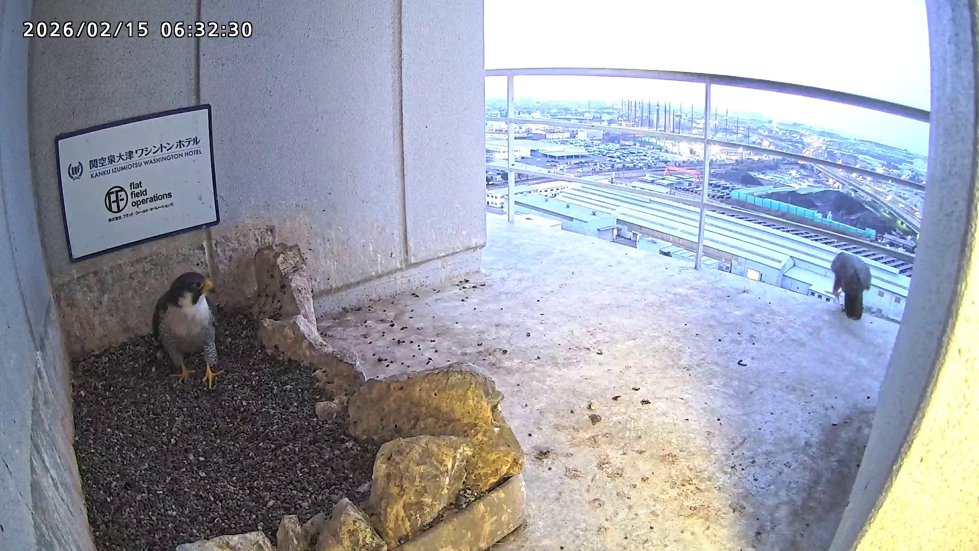 06:37 2羽で巣階に来ましたが、巣に入ったのはきららⅣくんのみ、さらちゃんはすぐに飛びました。06:43にきららⅣくんも飛びました。