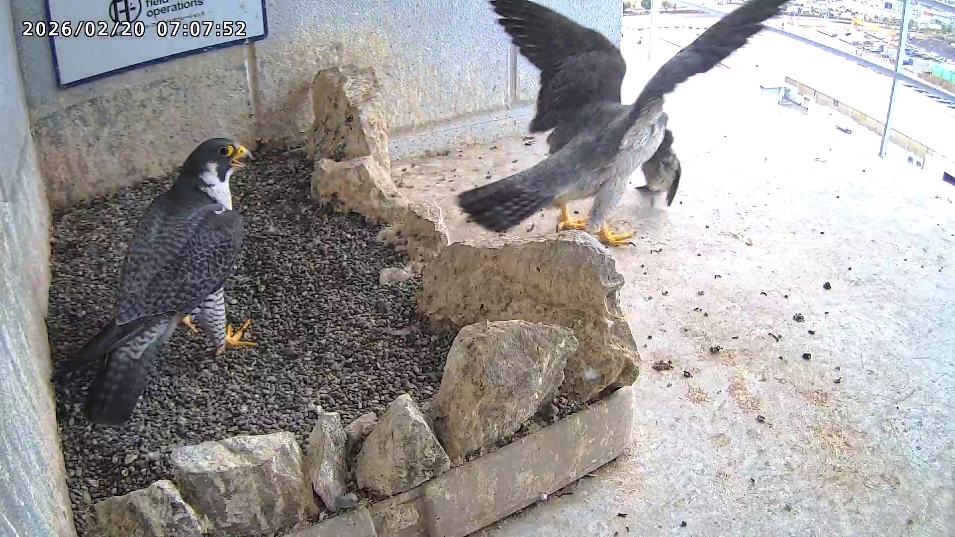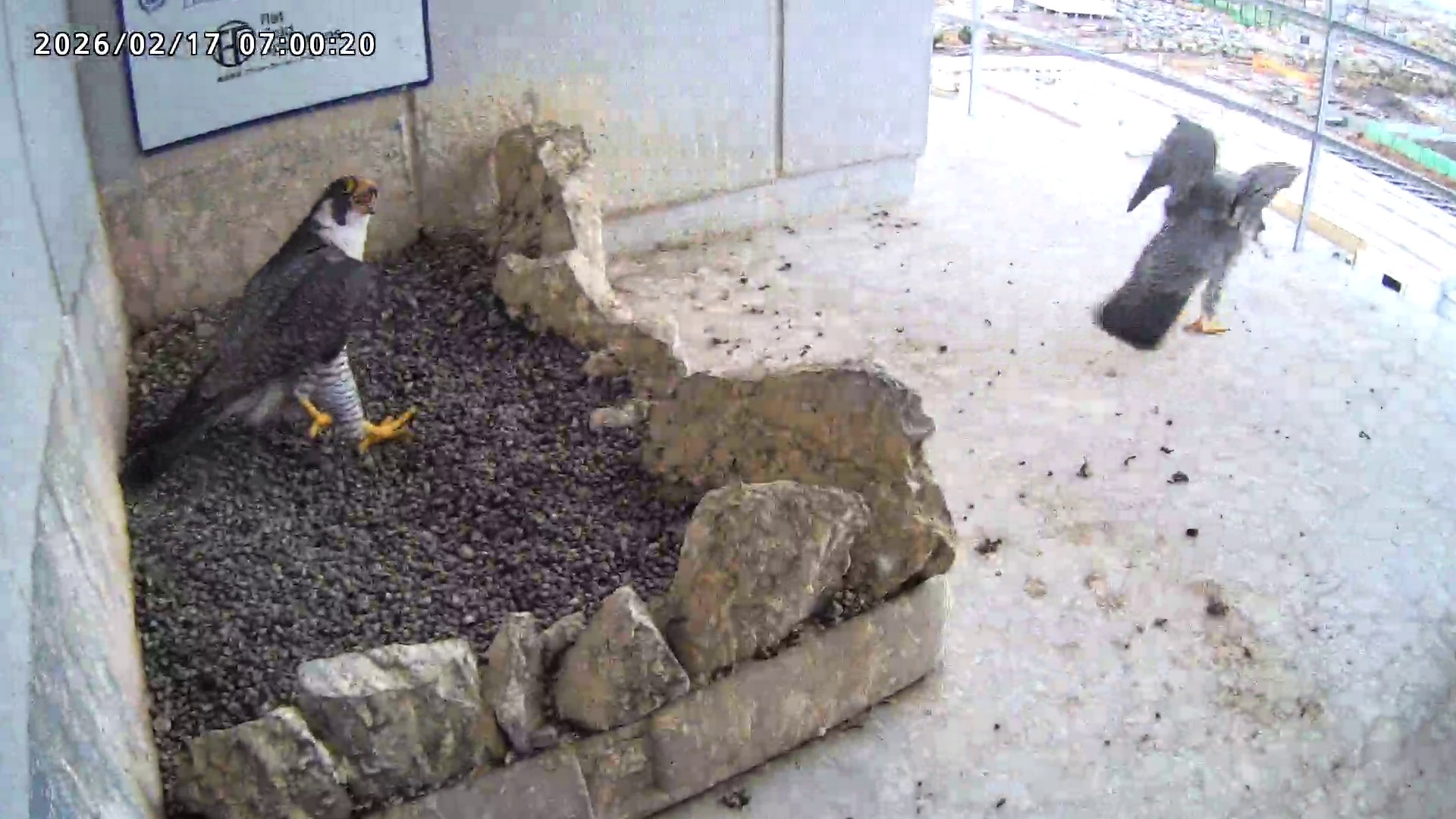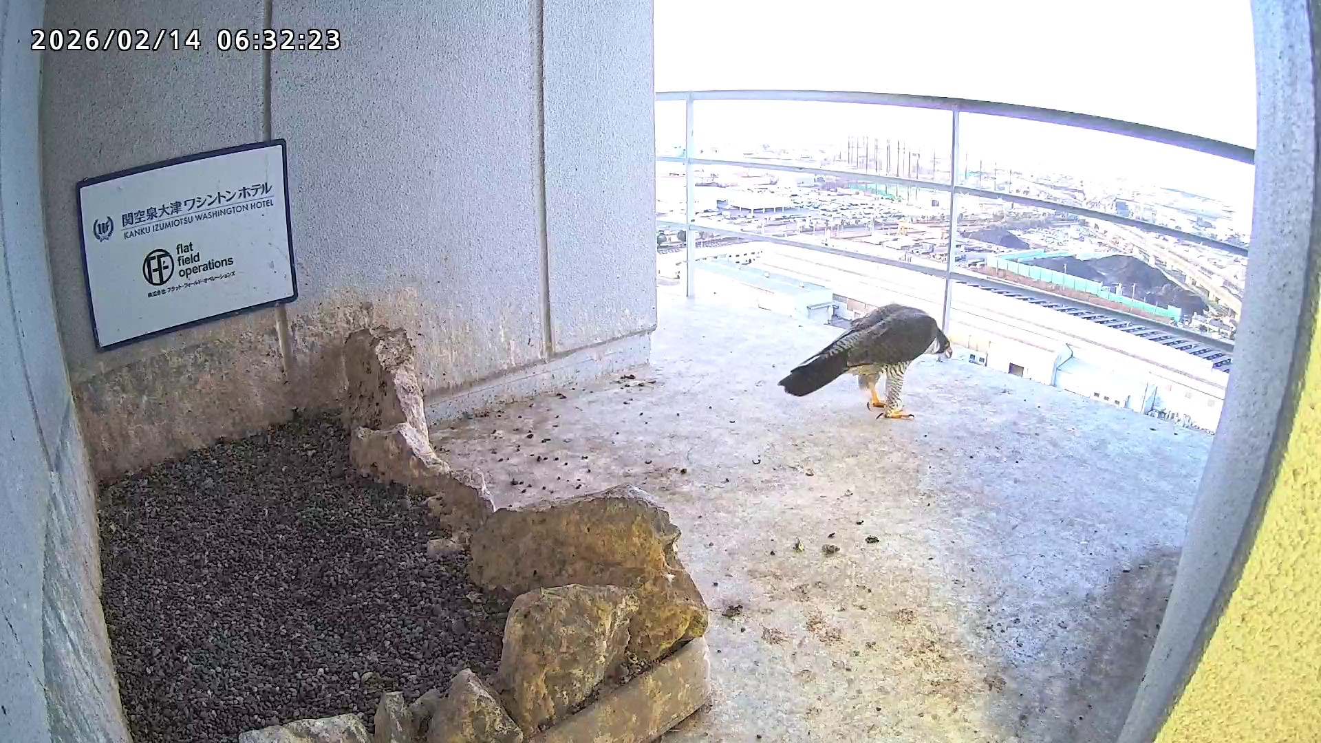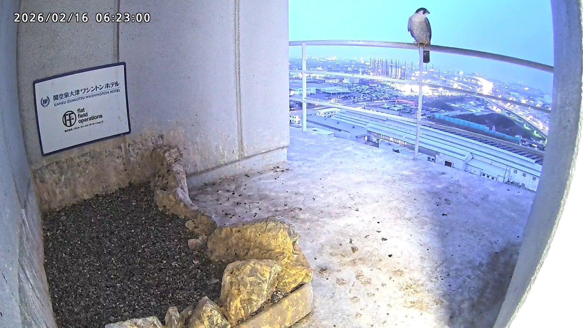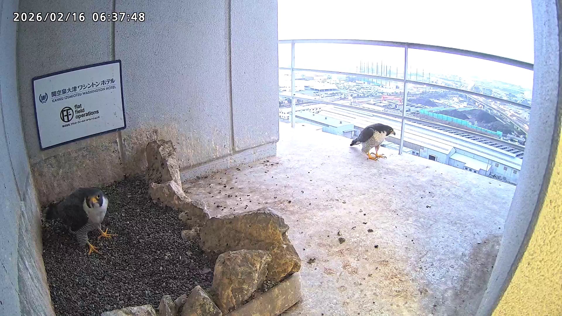 06:37 2羽で巣階に来ましたが、巣に入ったのはきららⅣくんのみ、さらちゃんはすぐに飛びました。06:43にきららⅣくんも飛びました。