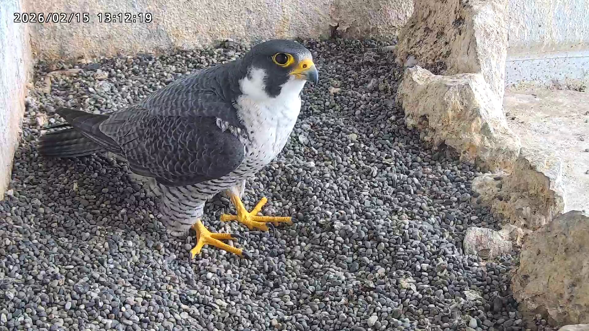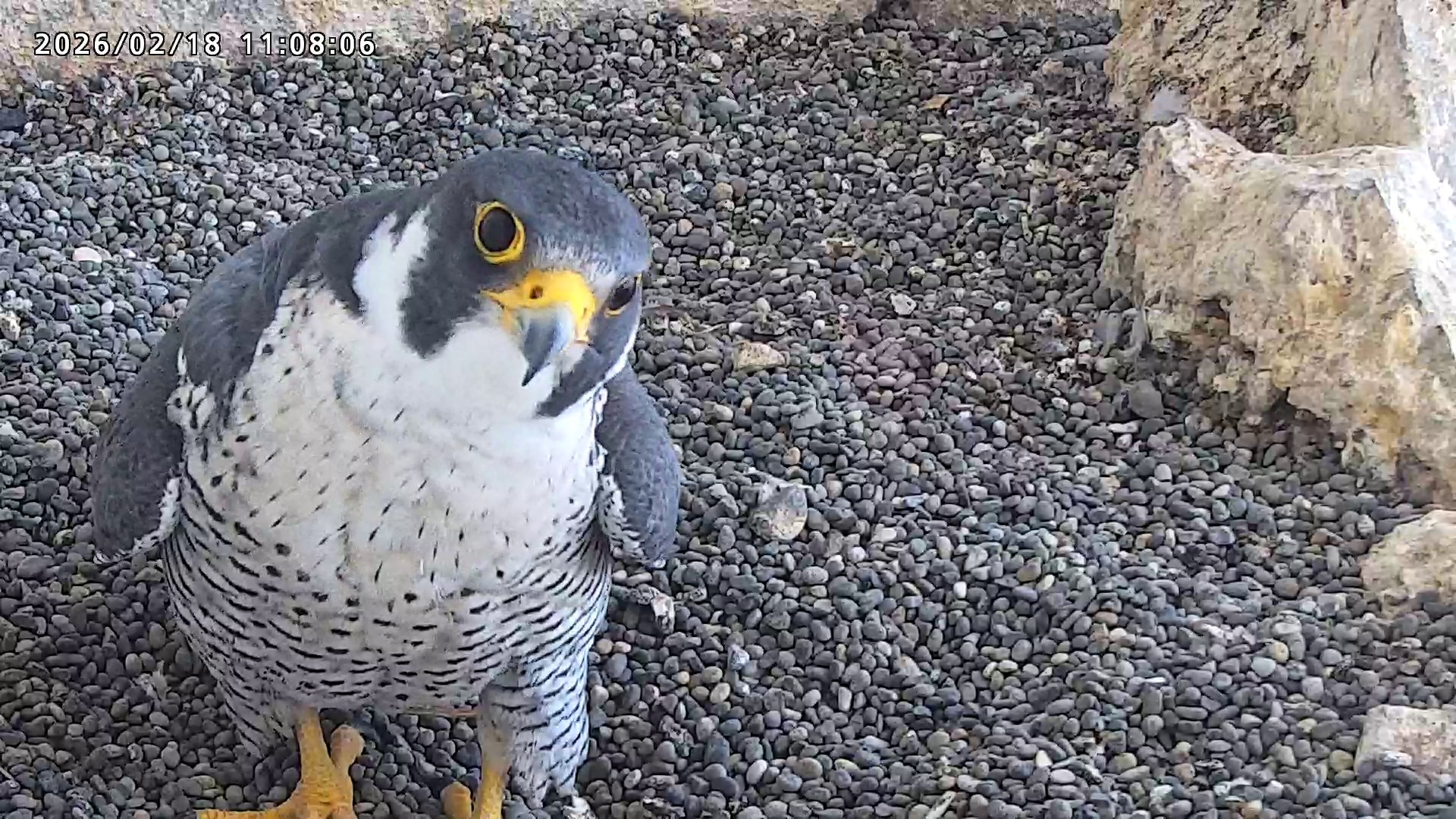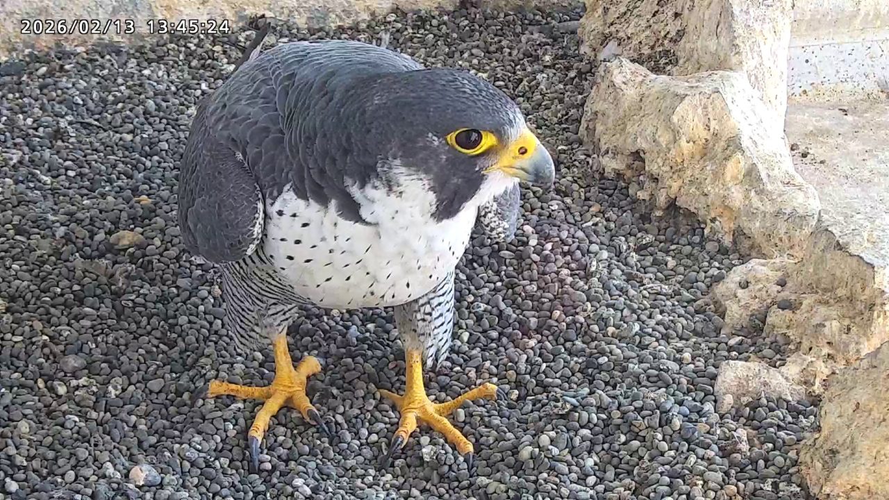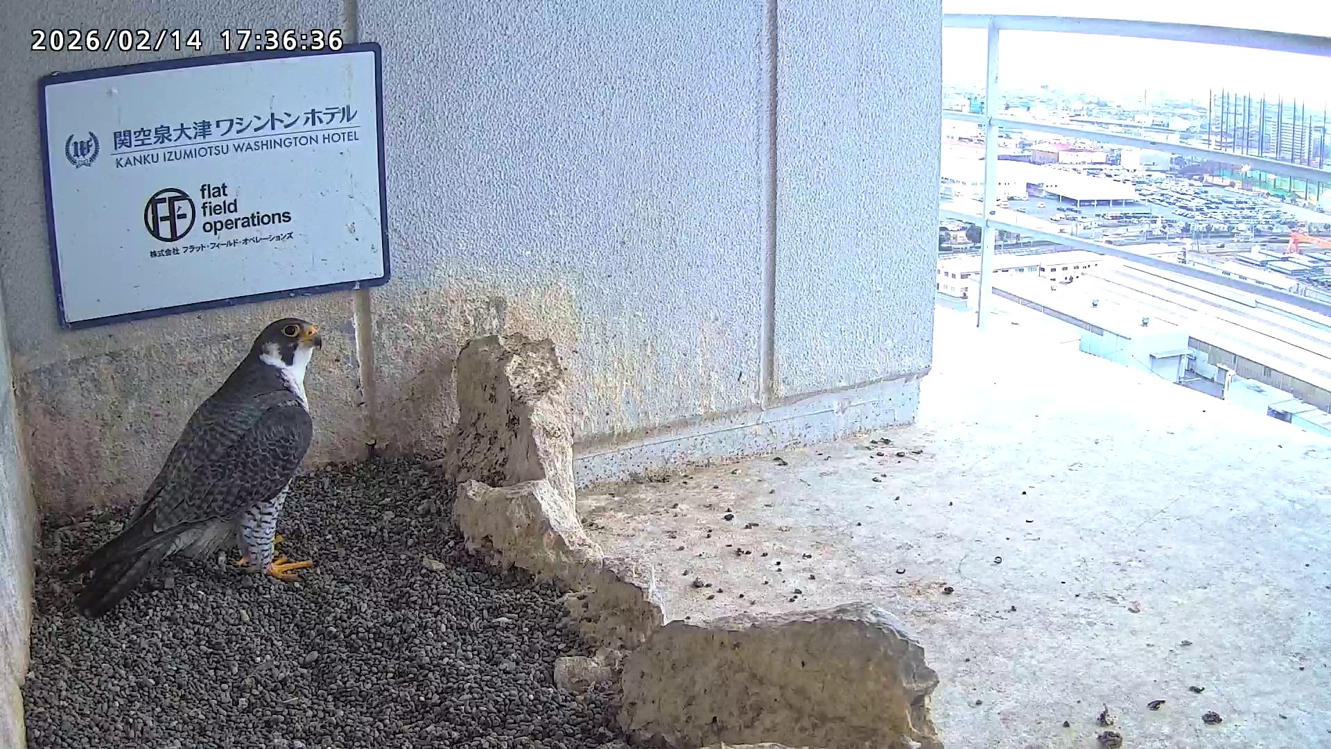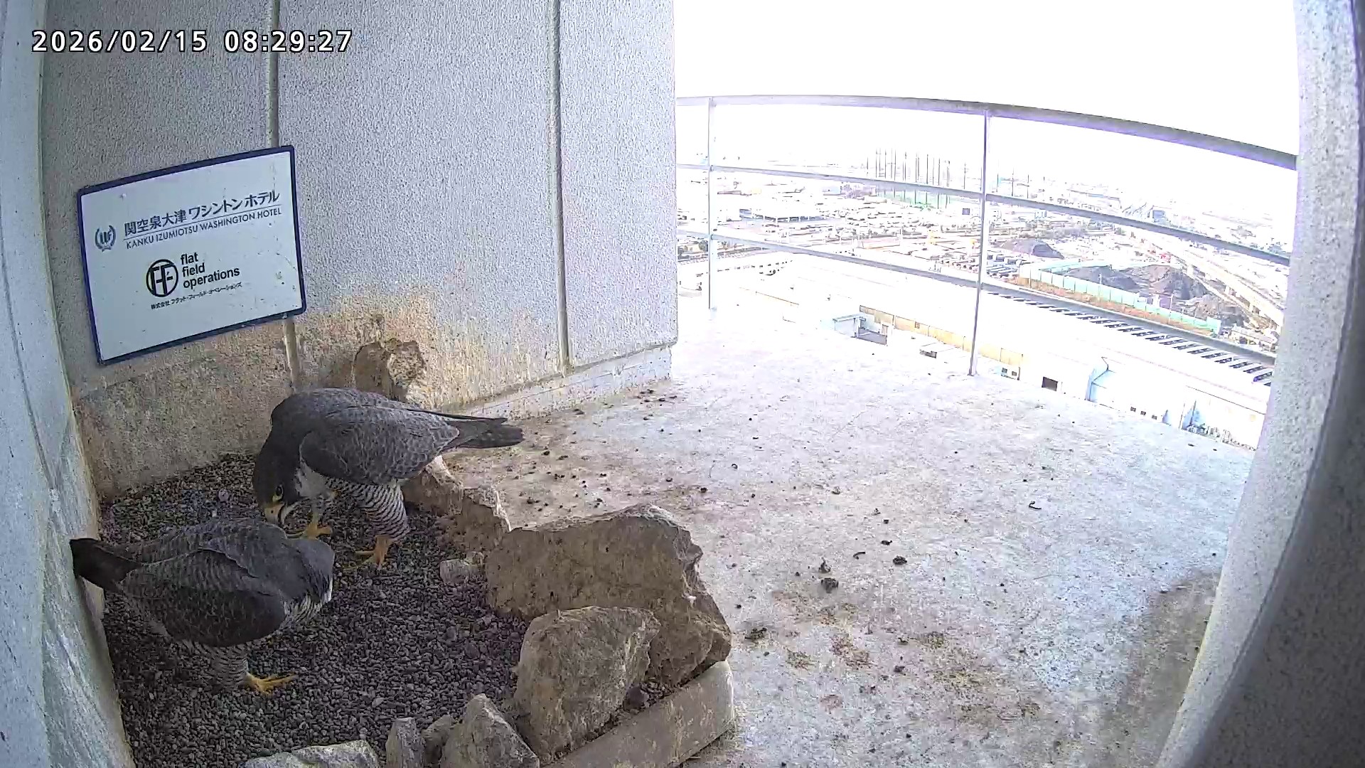 10:08 2羽で巣階にきてきららⅣくんが巣に入りました。さらちゃんは暫くベランダでぐずぐずしていましたが、きららⅣくんが巣から岩に乗るとそばに寄って来て、岩の上下でくちばし合わせをして挨拶しました。きららⅣくんが巣から出て手すりに移動、さらちゃんが巣に入りました。10:21さらちゃんが、10:24にきららⅣくんが飛びました。(動画あり) (動画あり:Full Ver.)