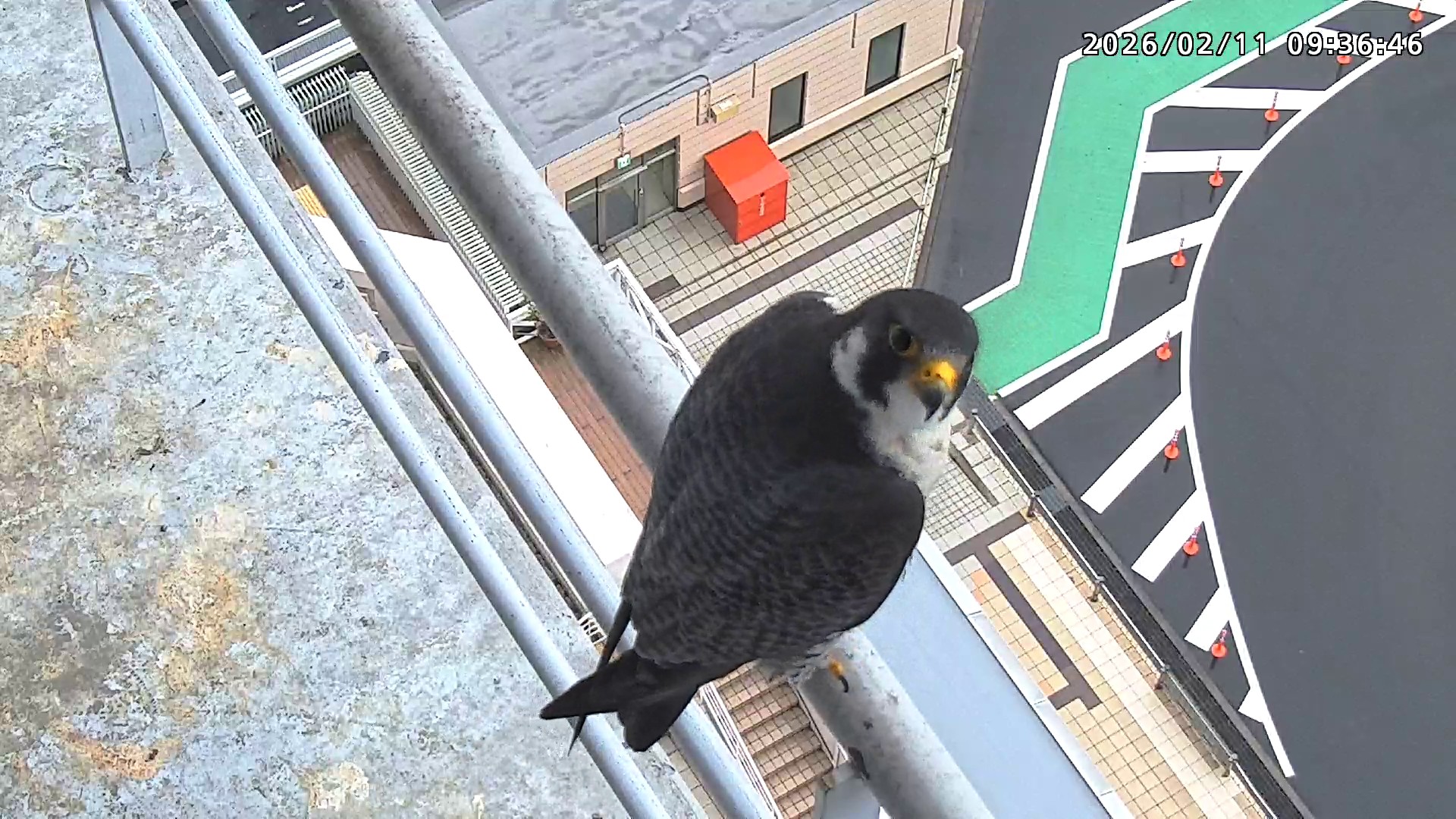 13:09 きららⅣくんが手すりから巣に入り、13:14に飛びました
