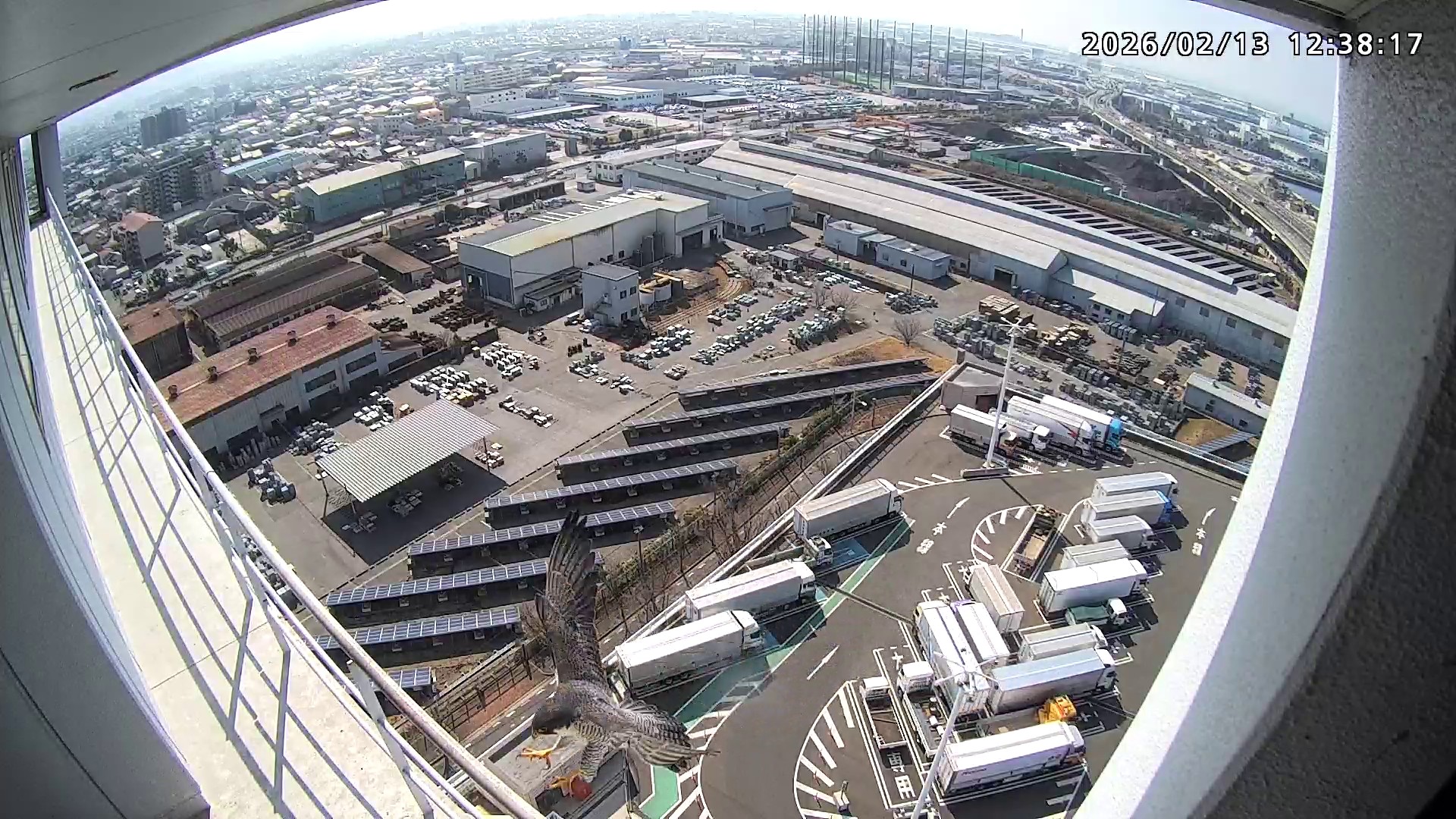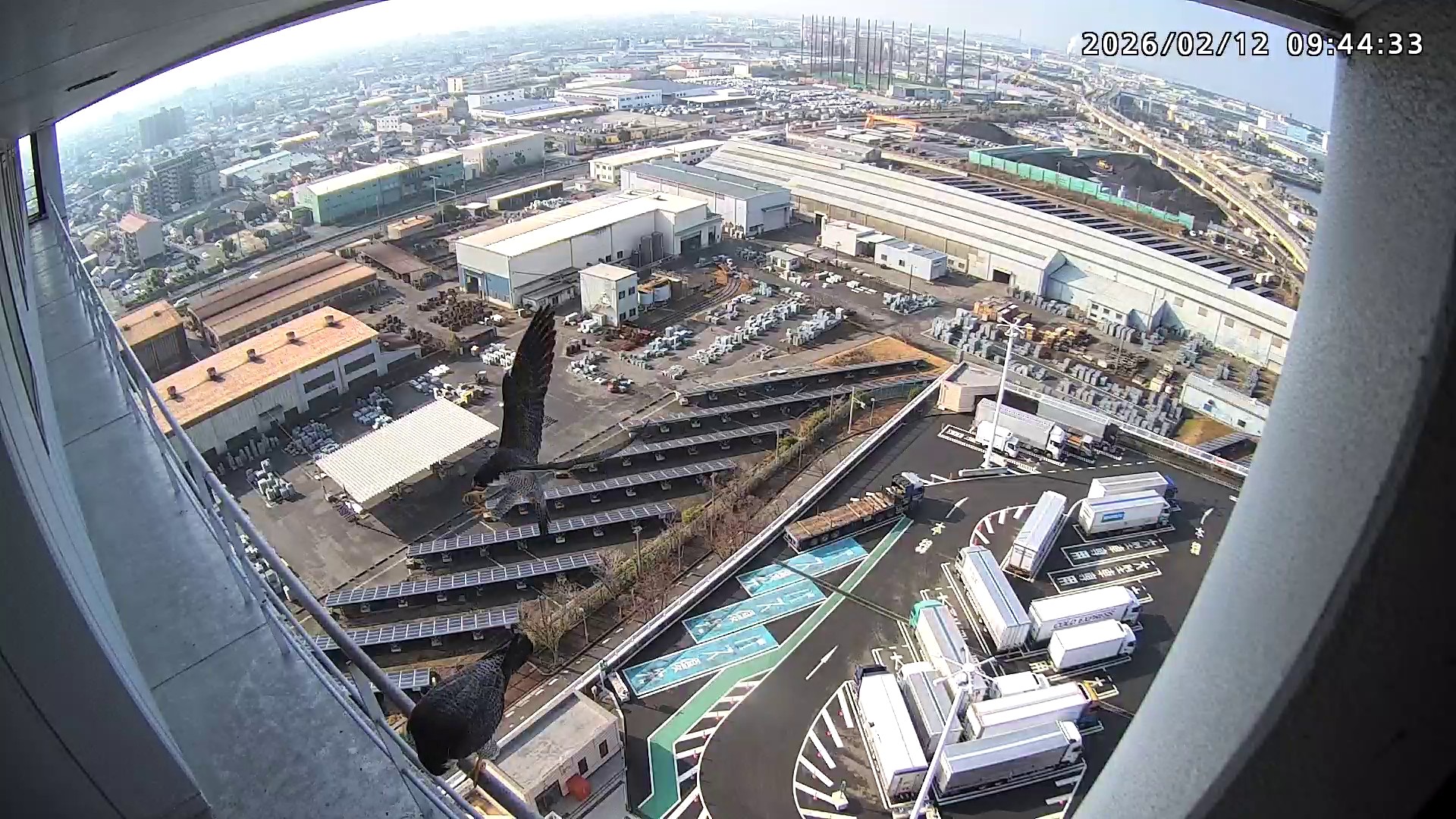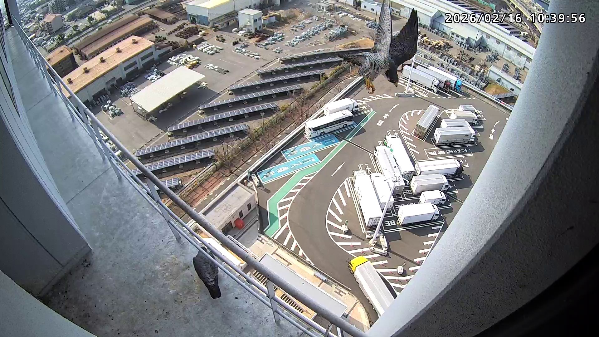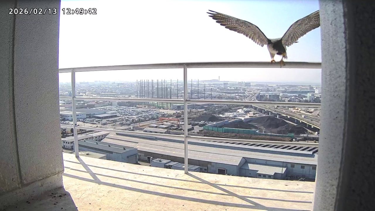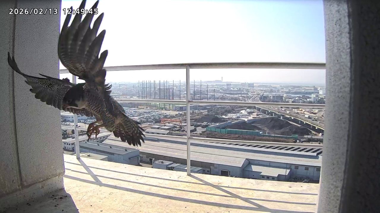 12:38 きららⅣくんが手すりから巣に入り12:40に一旦飛びましたが、12:43にもう一度手すりに来て12:54に手すりからベランダの海側に降りで飛んだようです。