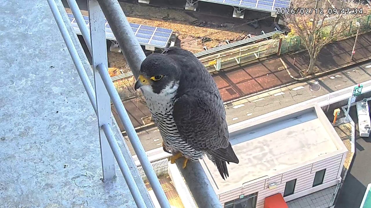 12:57 きららⅣくんが手すりに来て13:00に飛びました。