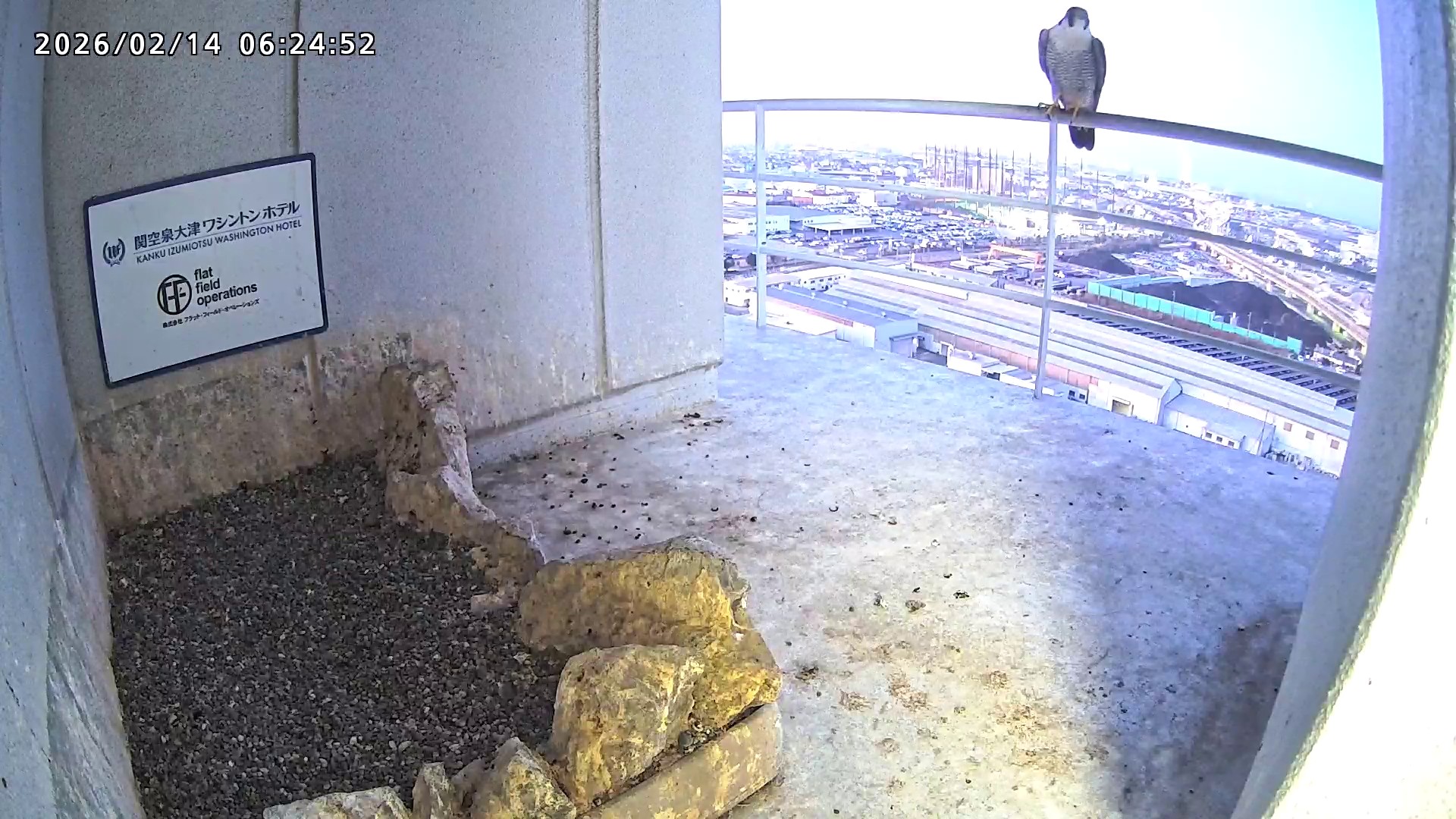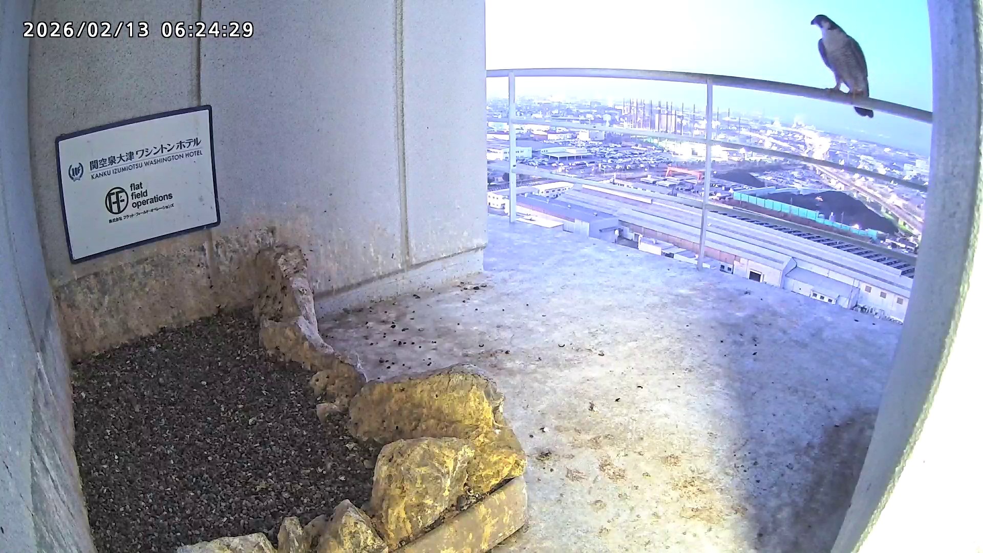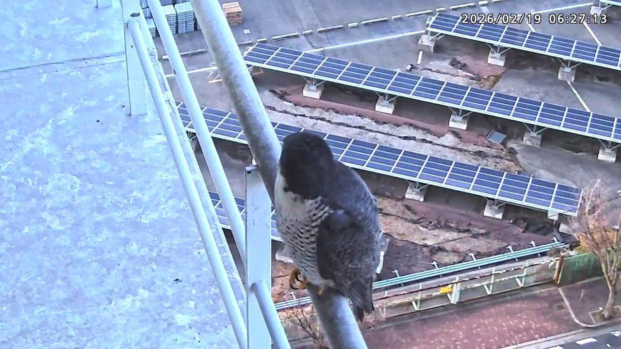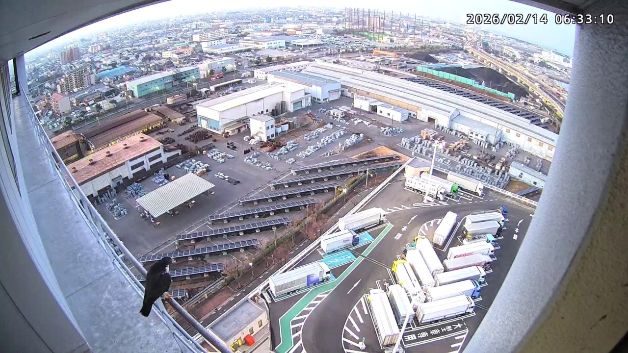 06:24 手すりにいたさらちゃんが、きららⅣくんの気配を感じてベランダに降りましたが、きららⅣくんは手すりを超えて直接巣に入りました。きららⅣくんが手ぶらであることを察知してさらちゃんはすぐに飛びました。きららⅣくんもすぐに飛びました。(動画あり)