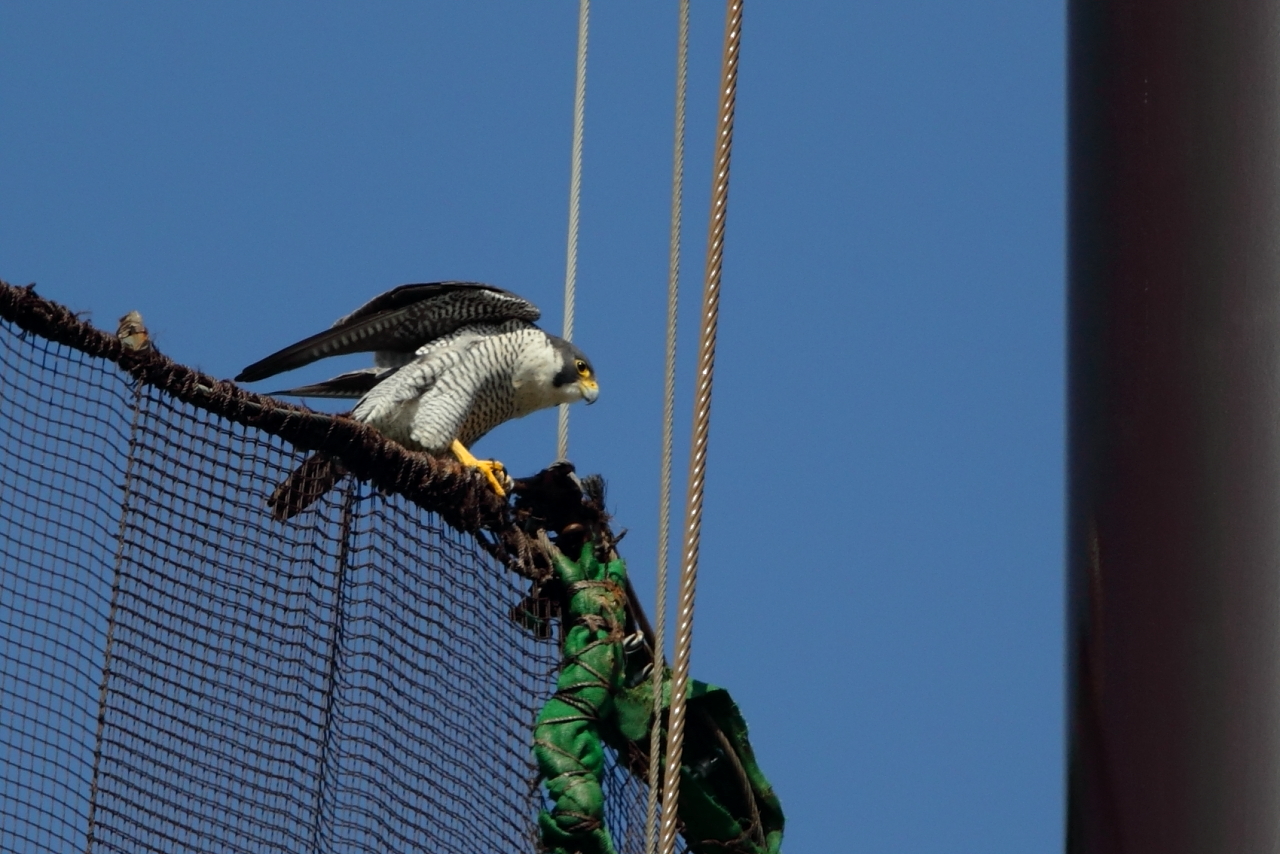 15時13分 2羽共にゴルフ場支柱にいます。1羽は、ご飯を食べています。(Mi)