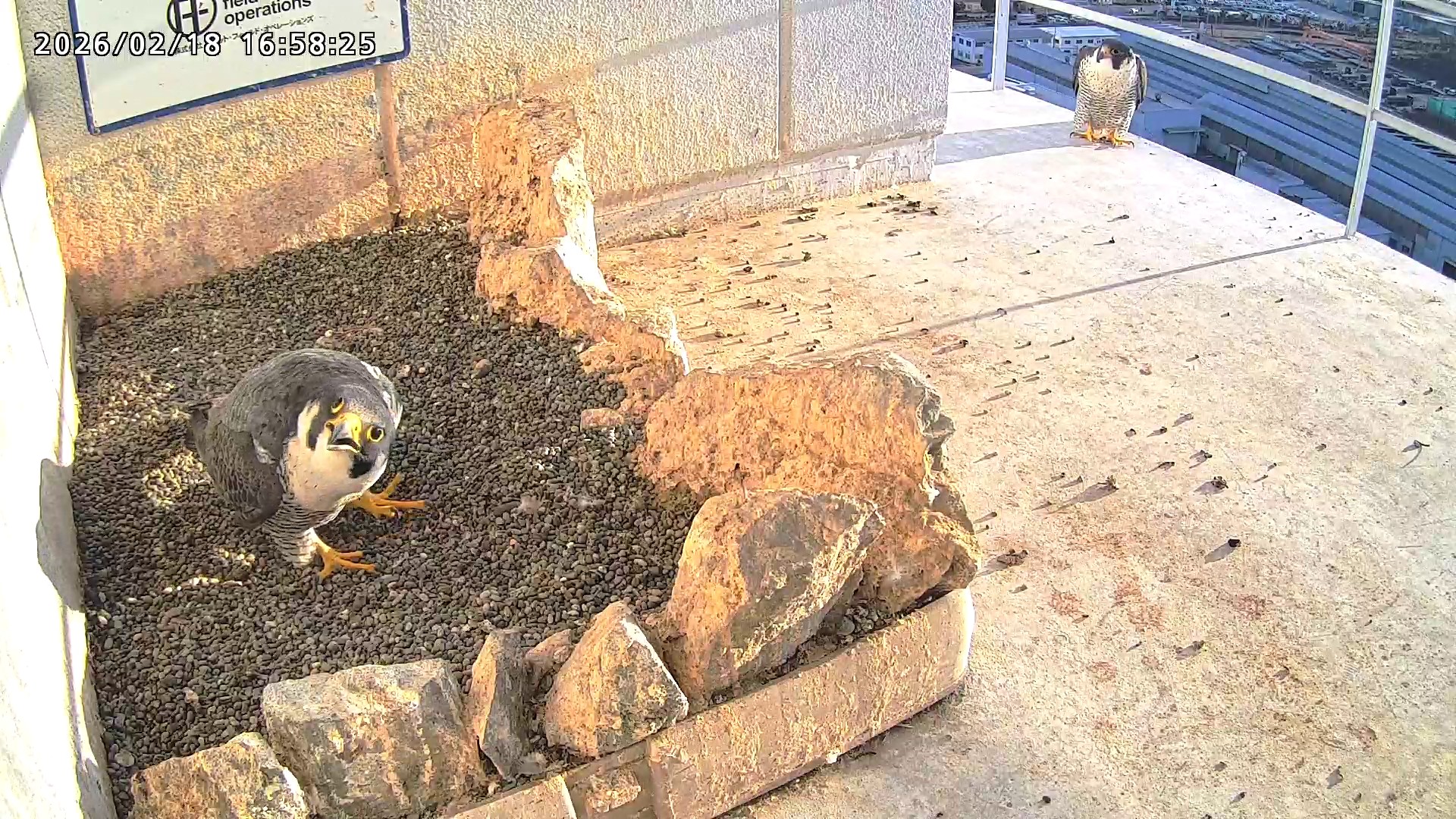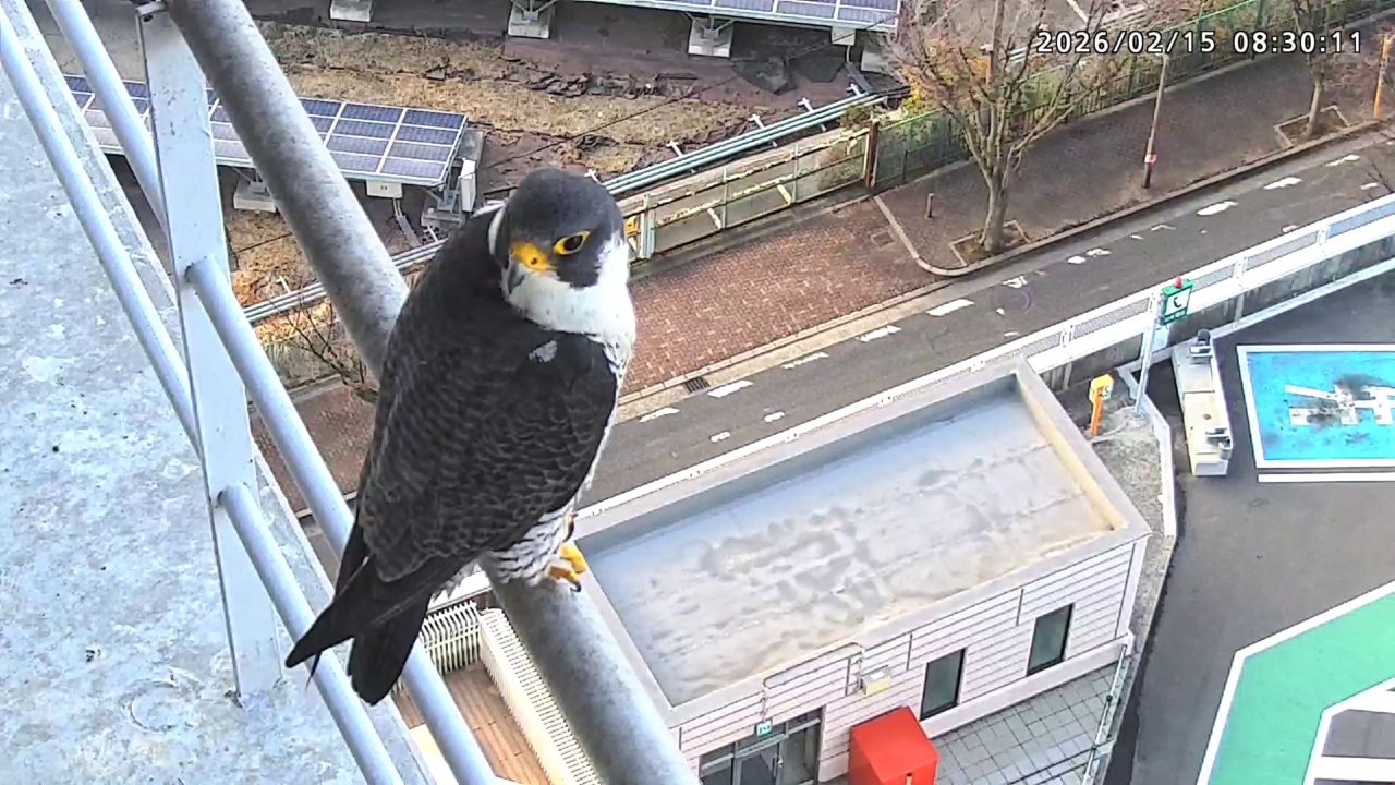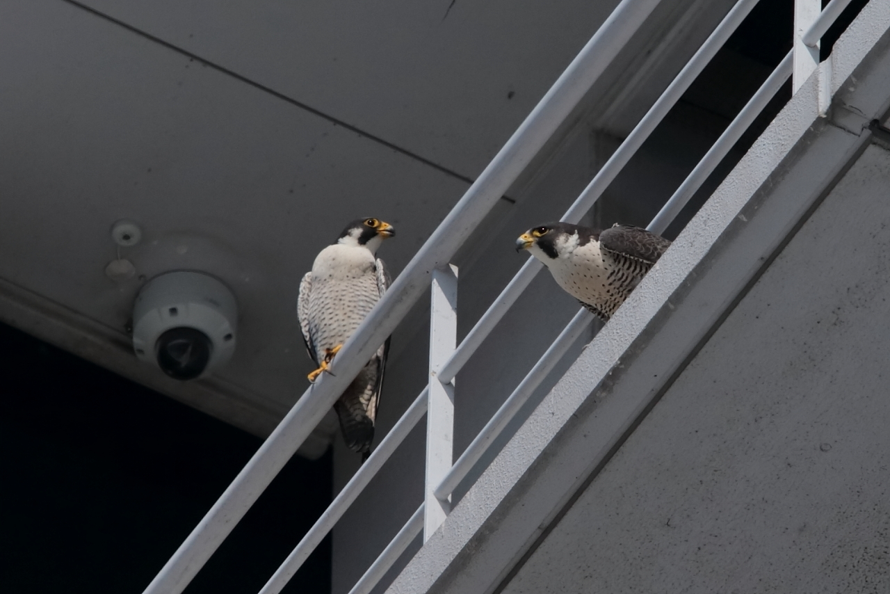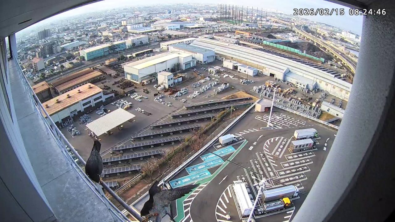 15:40 きららⅣくんが手すりにいるところにさらちゃんがやって来て、巣の中ツーショット。15:58に2羽とも飛びました。