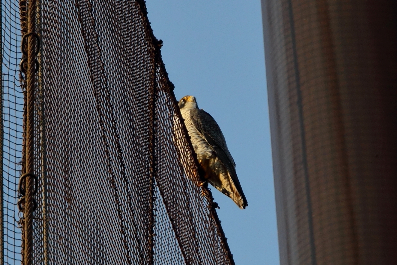 今朝のツーショット後、さらちゃんがホテルマンション側18階海側手すりに来て、今もずっとそのままです。(Mi)