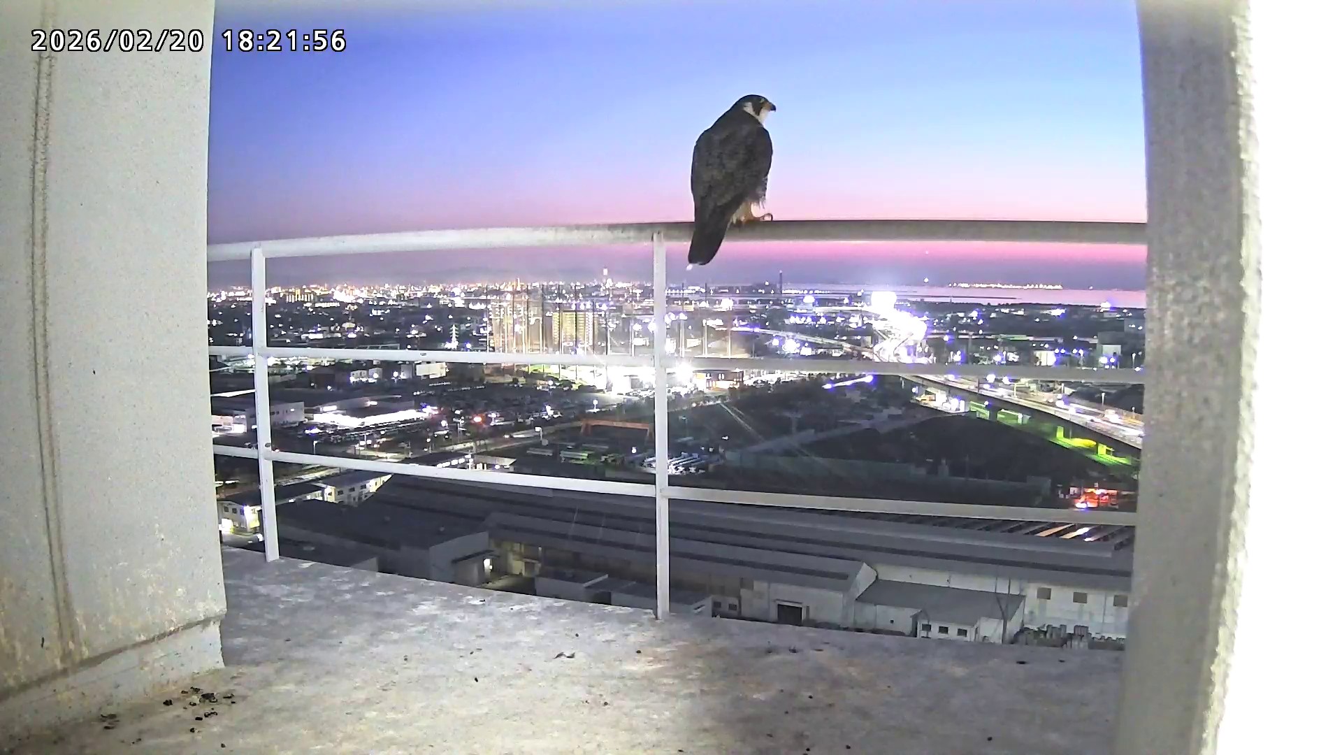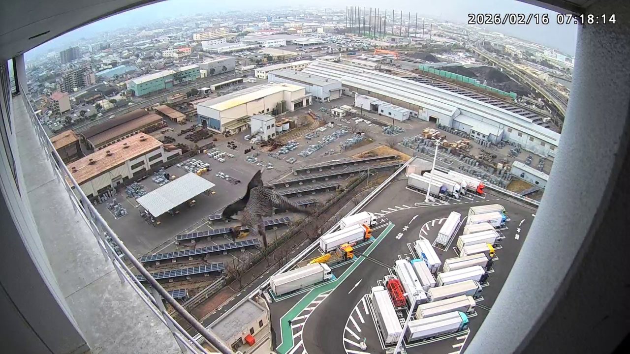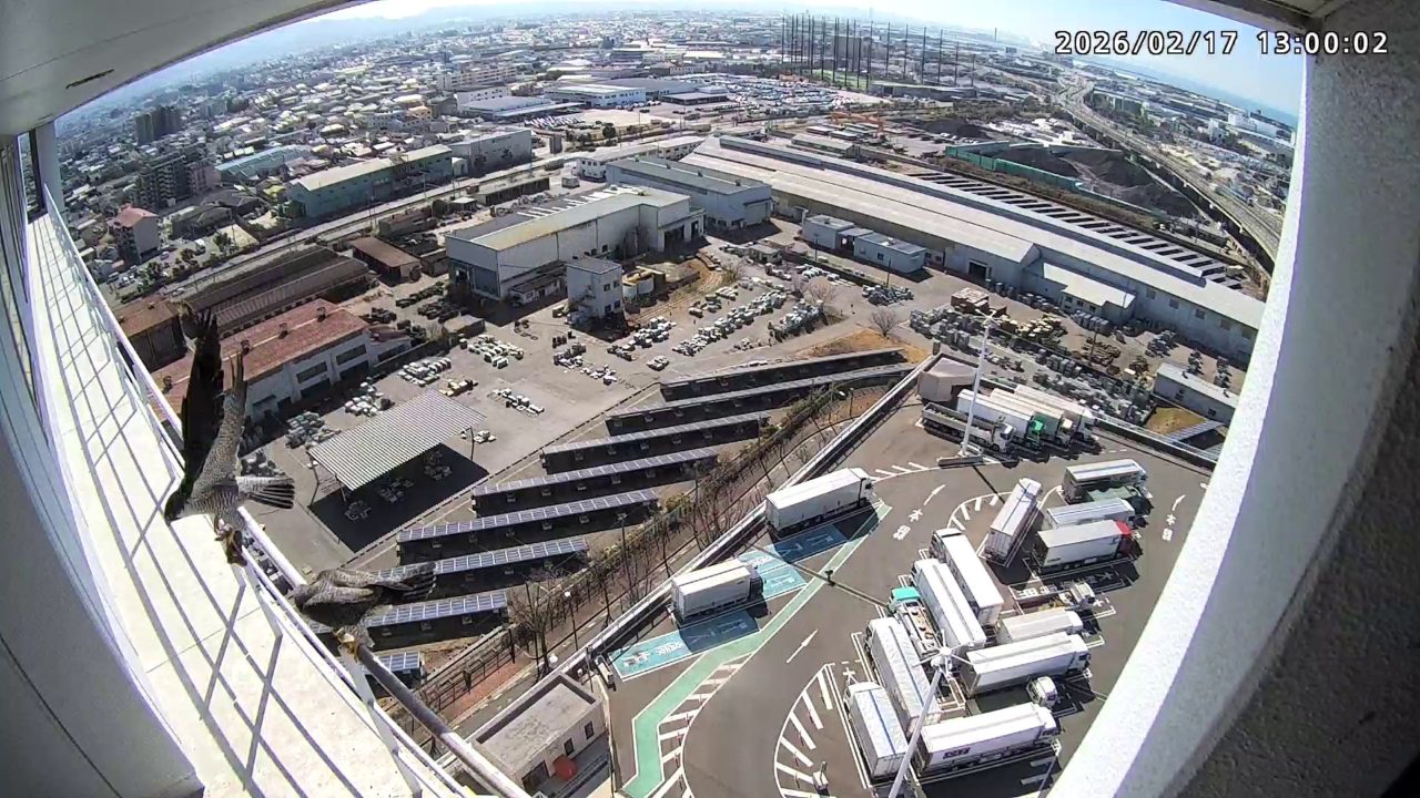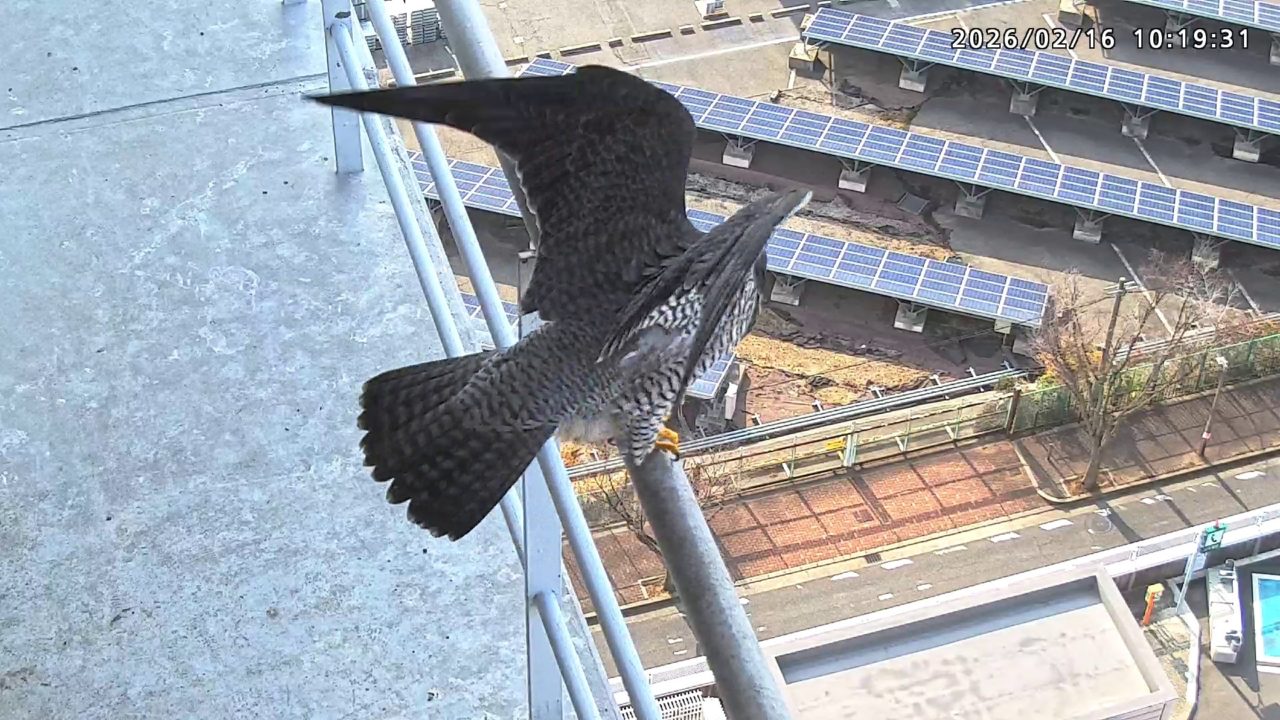 18:03 きららⅣくんが手すりから巣に入り、18:09に飛びました。(動画あり)