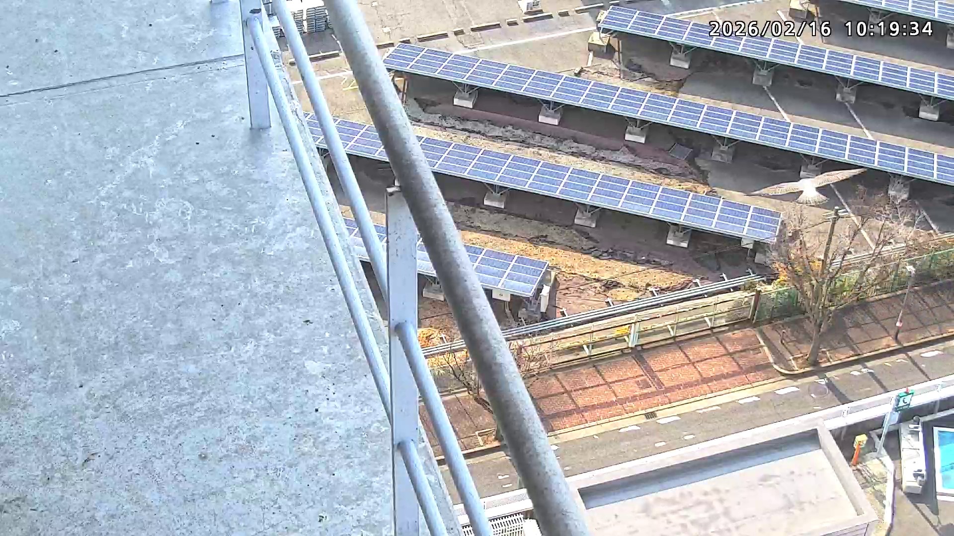 09:20 2羽で巣階に来ましたが、巣に入ったのはきららⅣくんのみ。さらちゃんはすぐに飛びました。きららⅣくんは10:19まで手すりにいました。