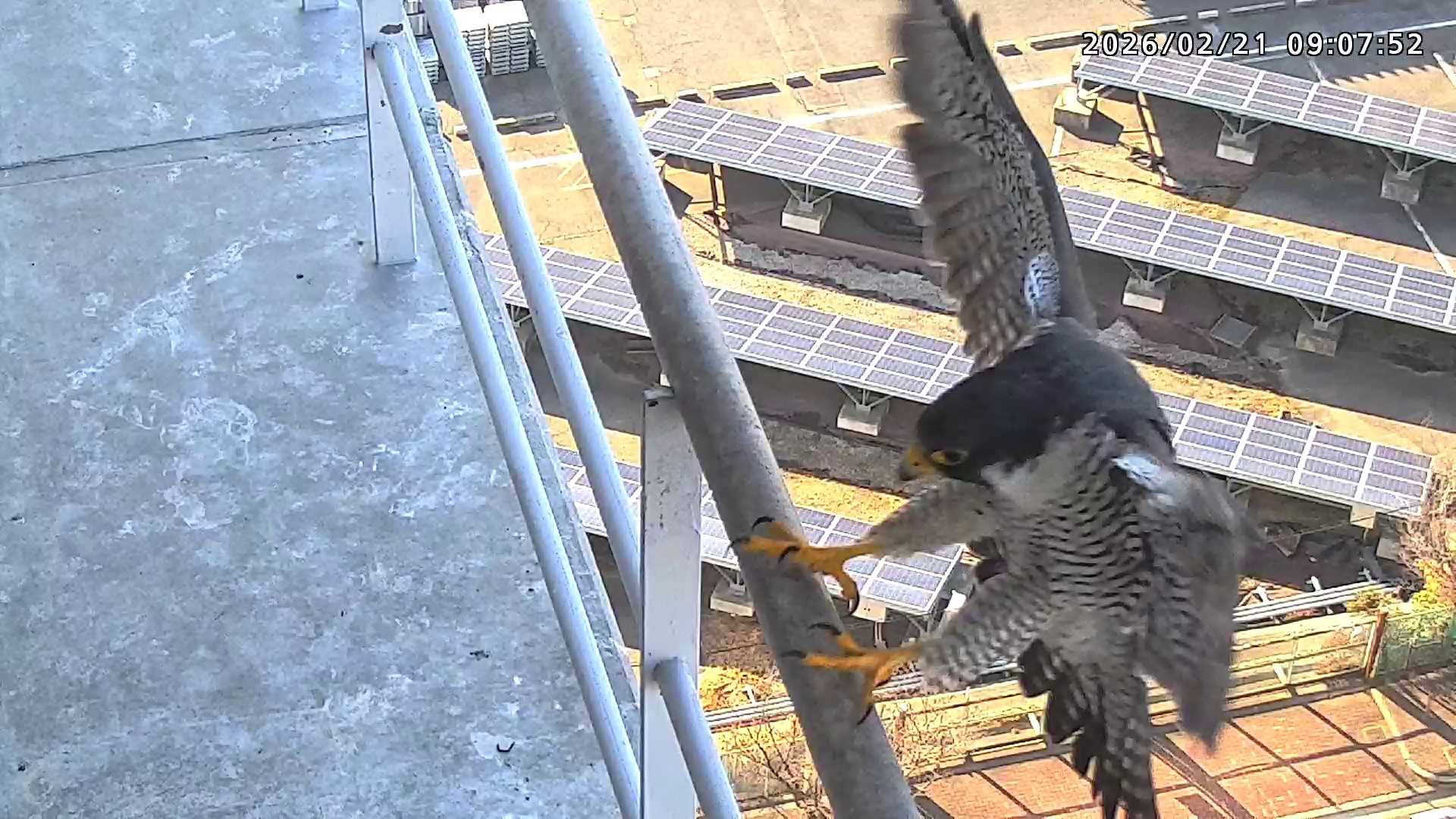 09:03 さらちゃんがベランダから巣に入りました。きららⅣくんが手すりに来ましたが、さらちゃんはすぐに飛びました。その後きららⅣくんは手すりで長居しています。(動画あり) (動画あり:Long Ver.)