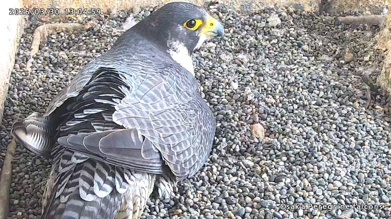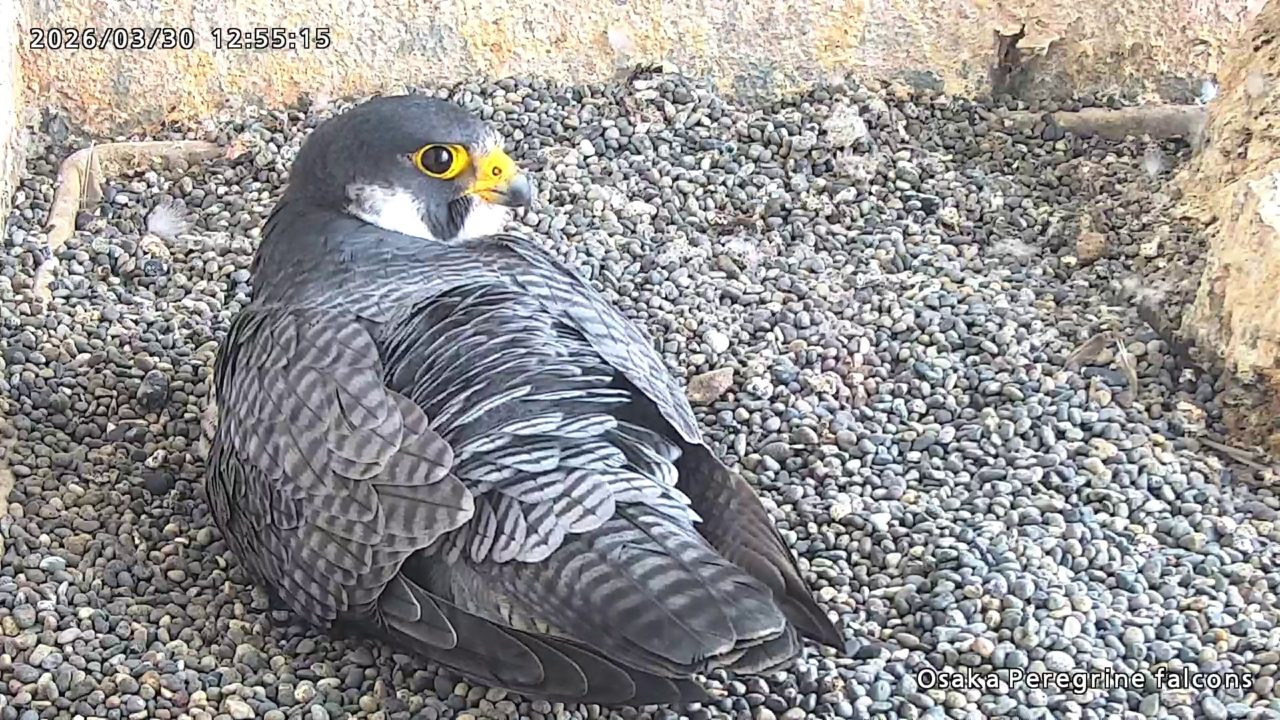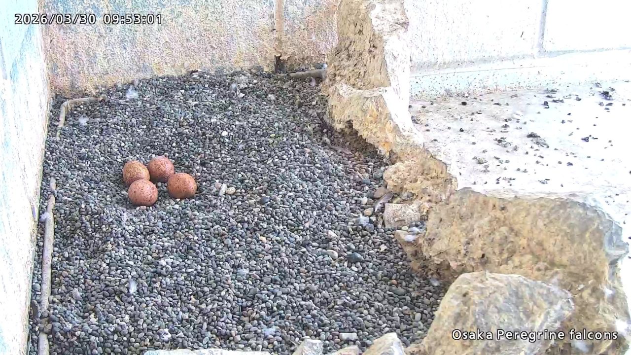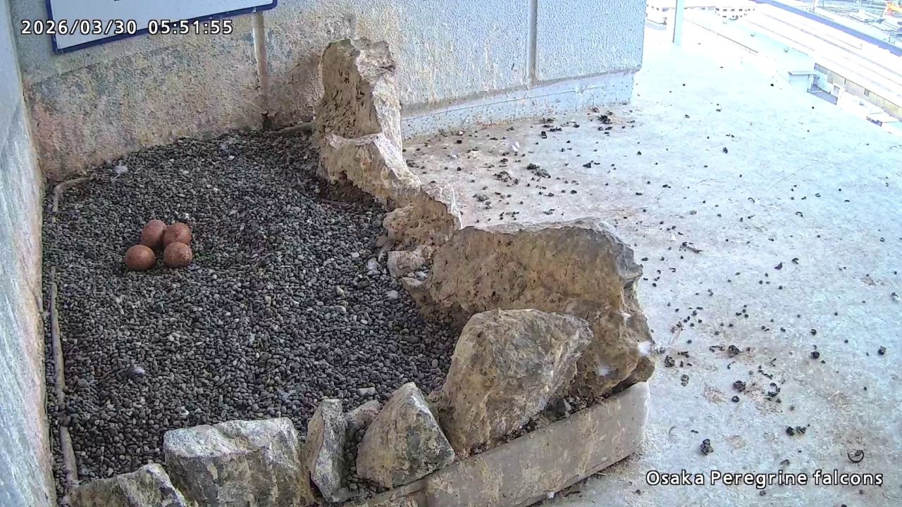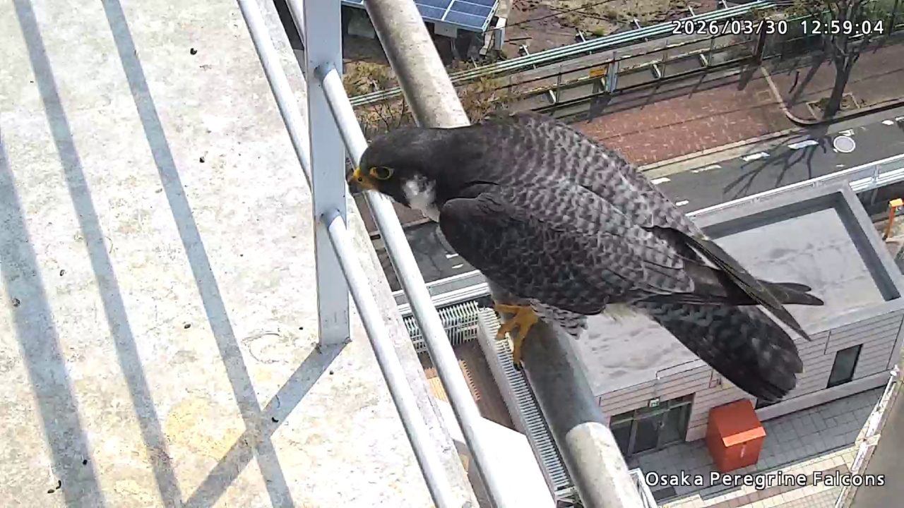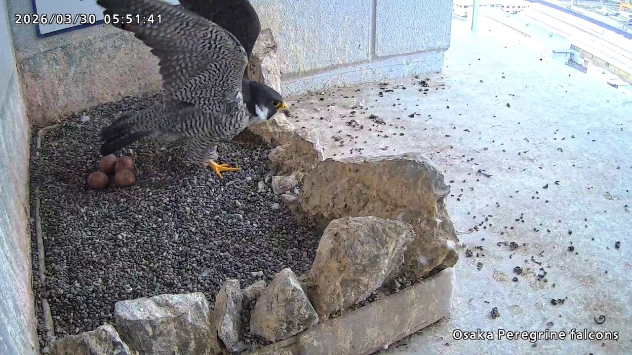05:51 きららⅣくんが手すりに移動し飛びました。05:55にさらちゃんが来て抱卵交代。