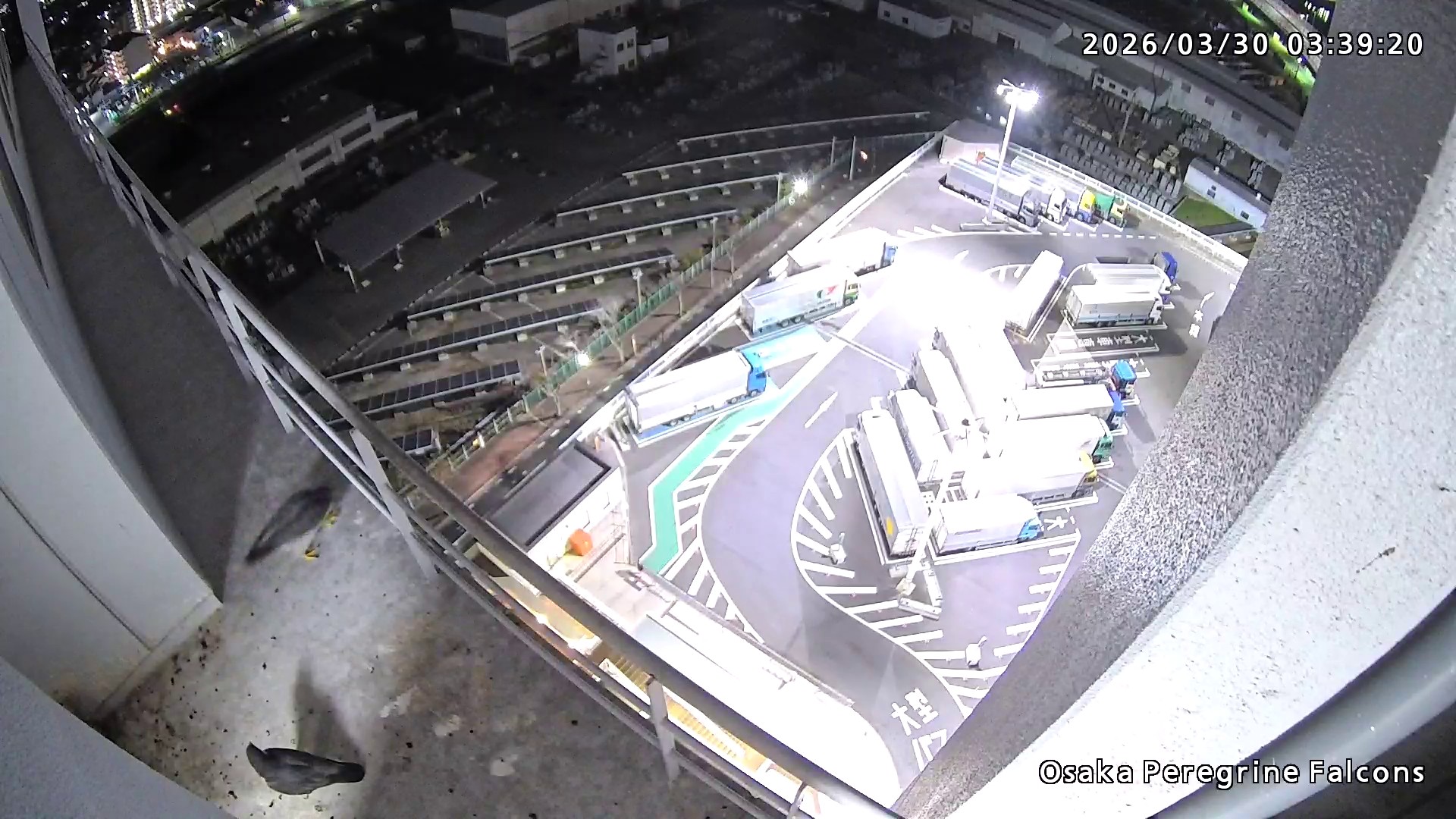03:39 前日から抱卵していたさらちゃんのところに、きららⅣくんが手すりから巣に入り抱卵交代。